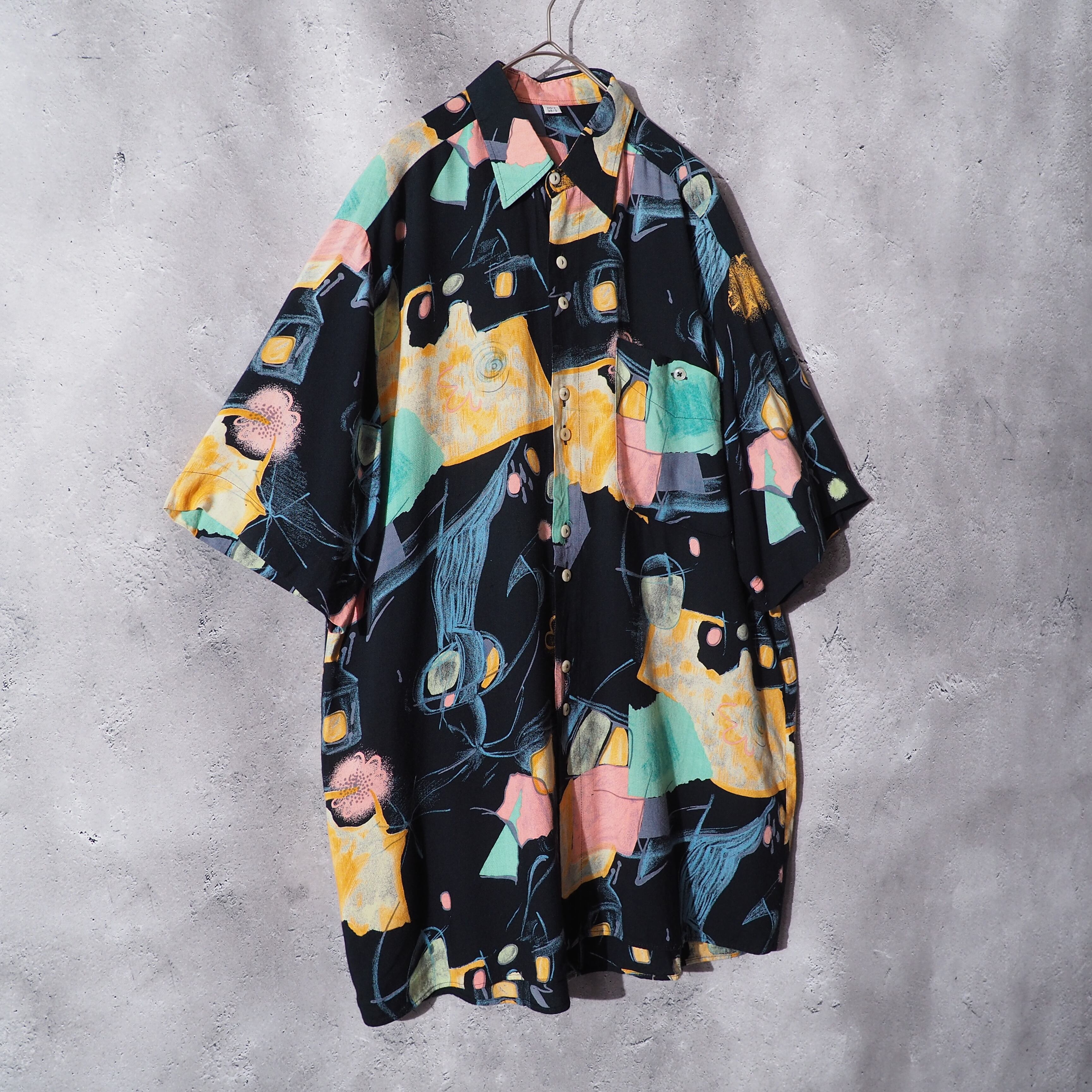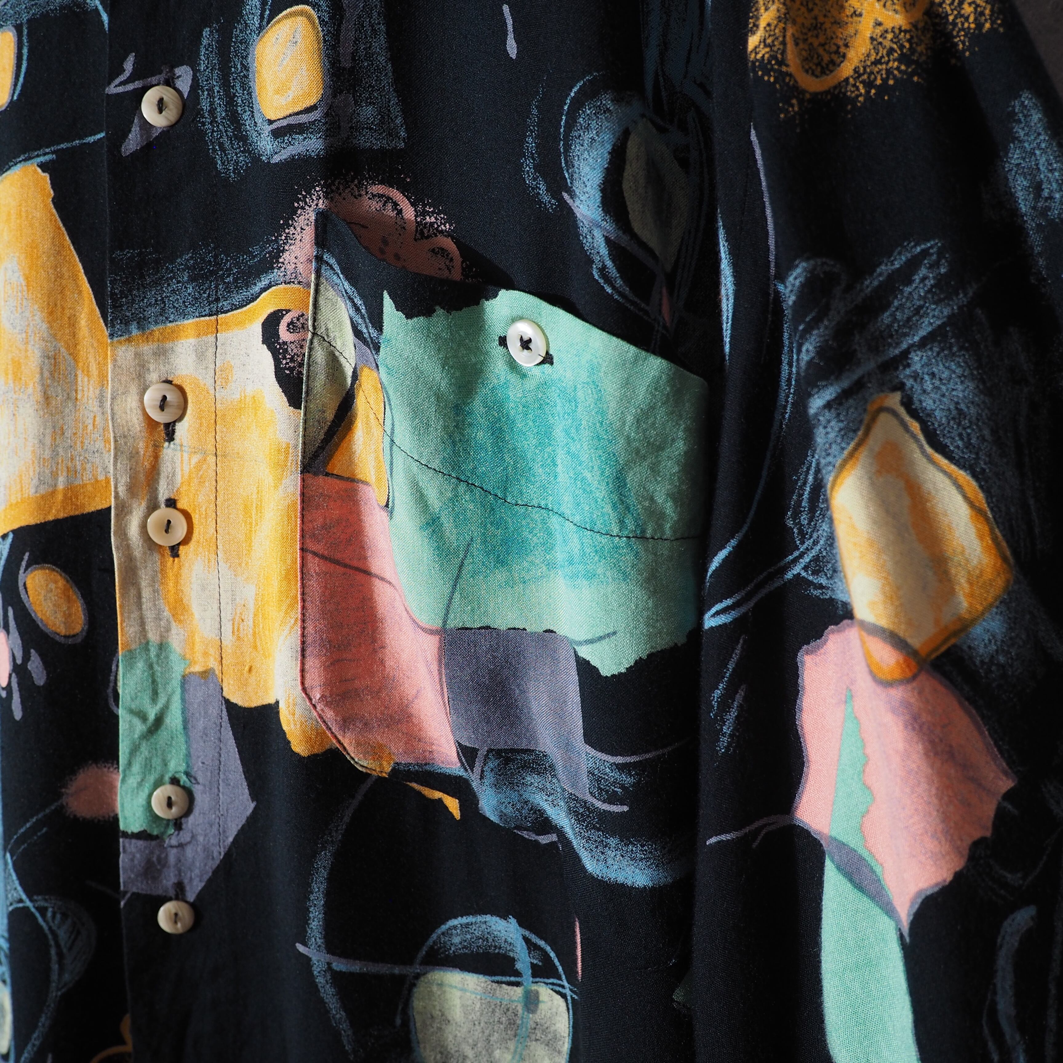 1990s Fantastic contemporary art painted vintage rayon shirt
