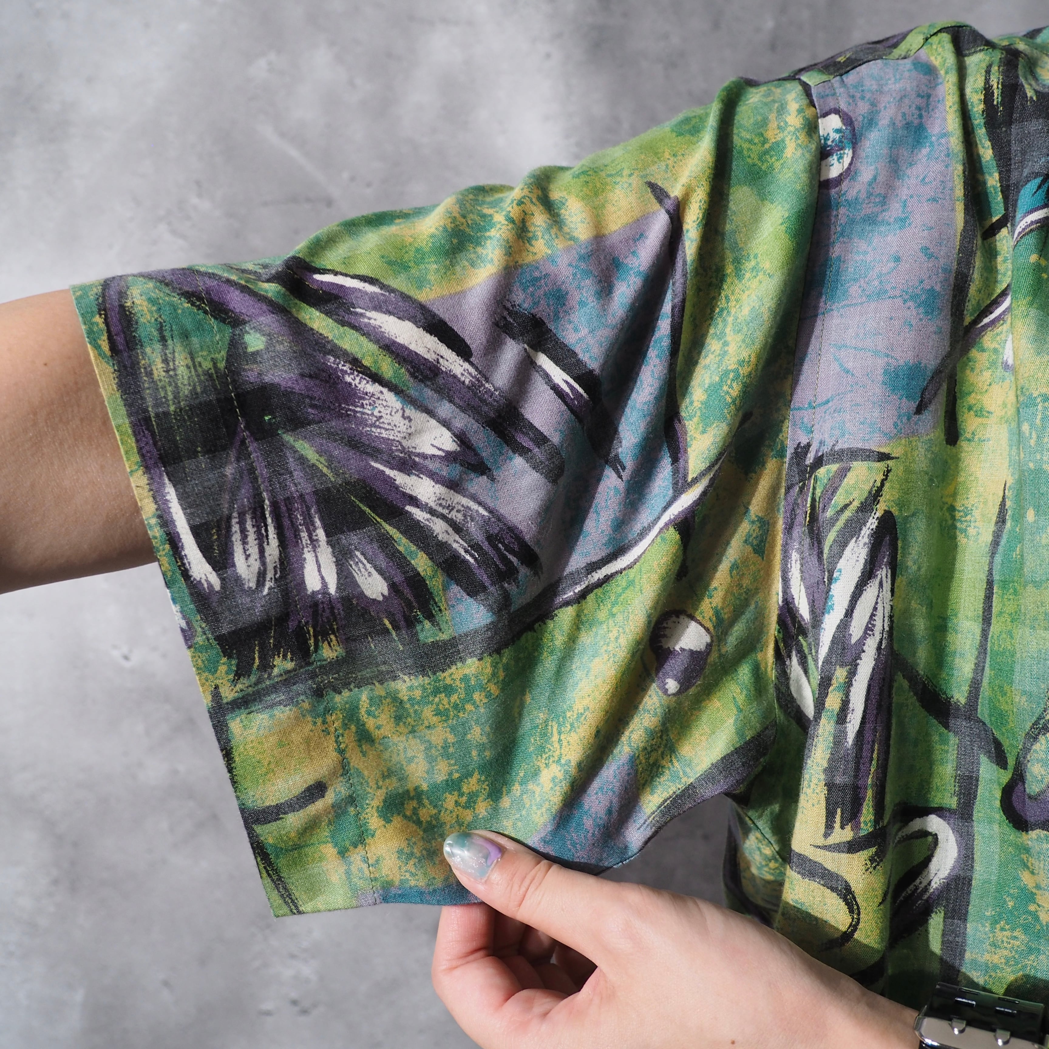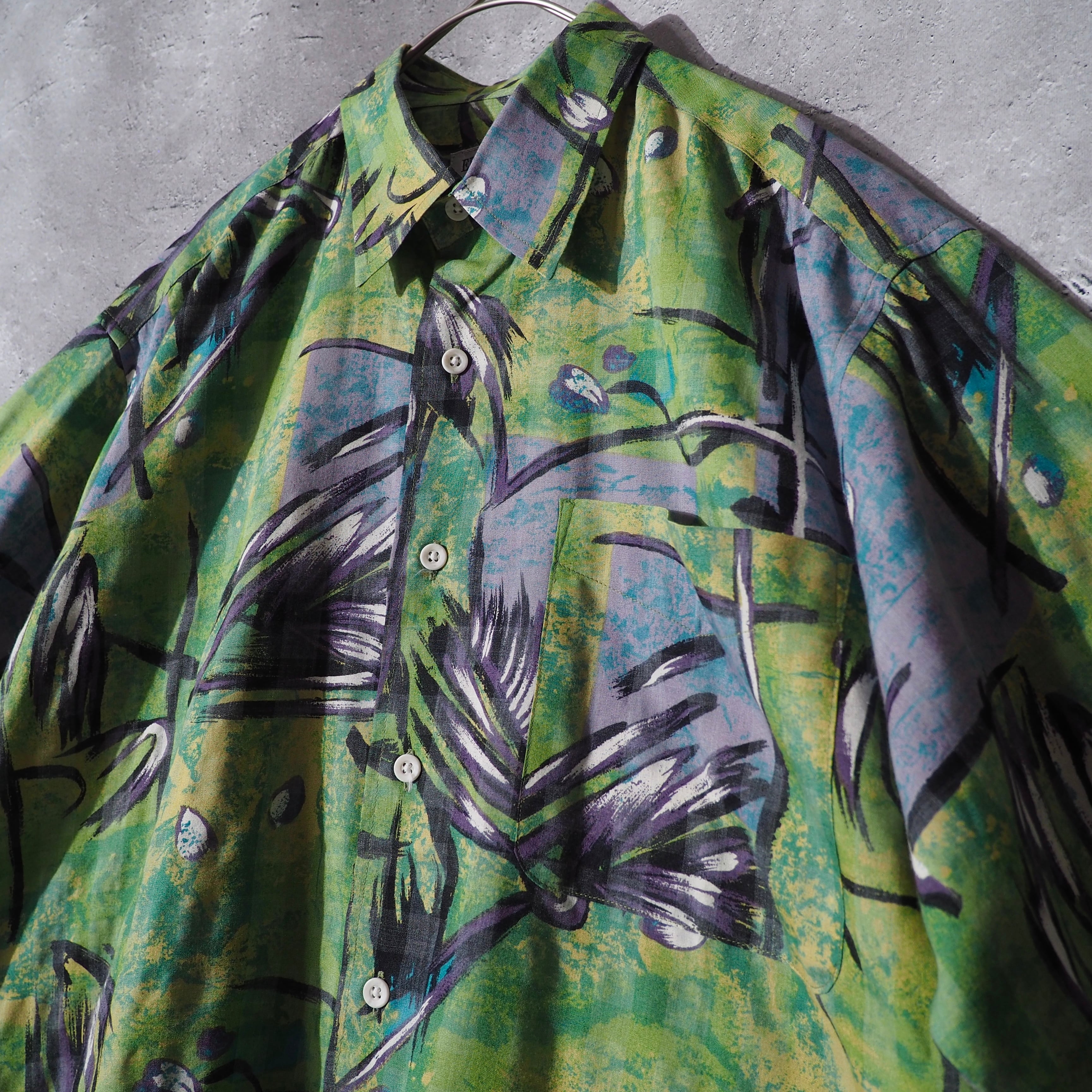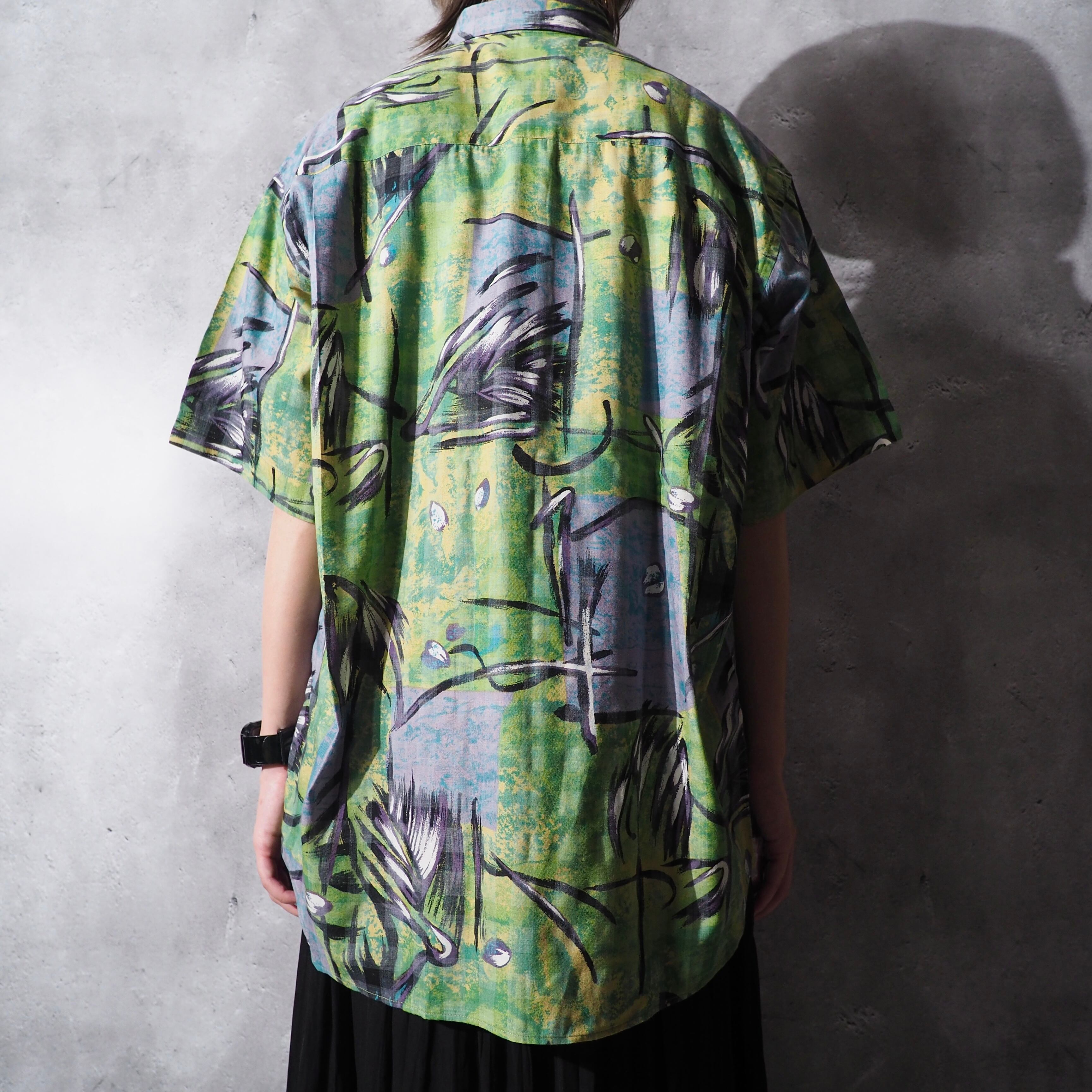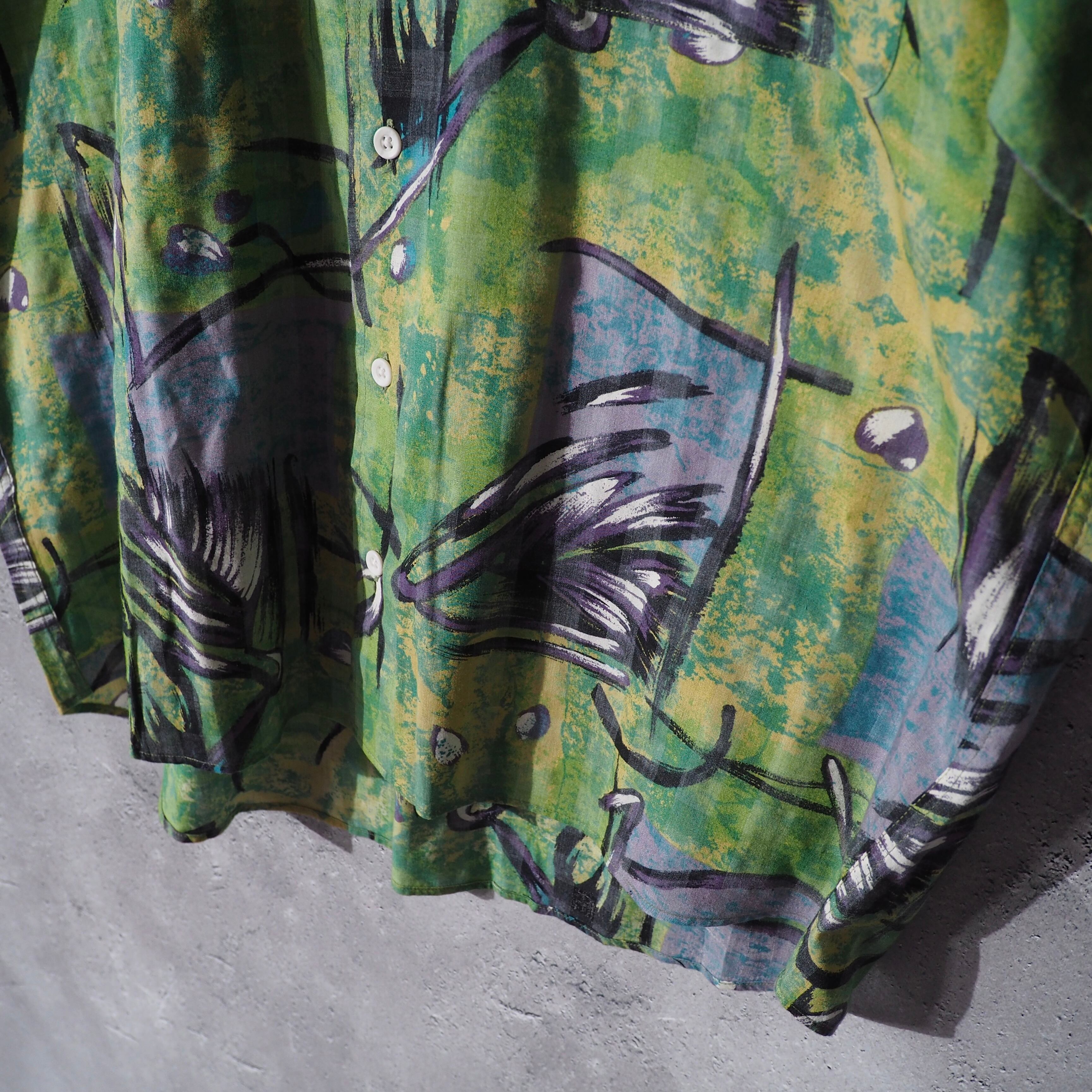 1990s colorful light green hand art printed shirt