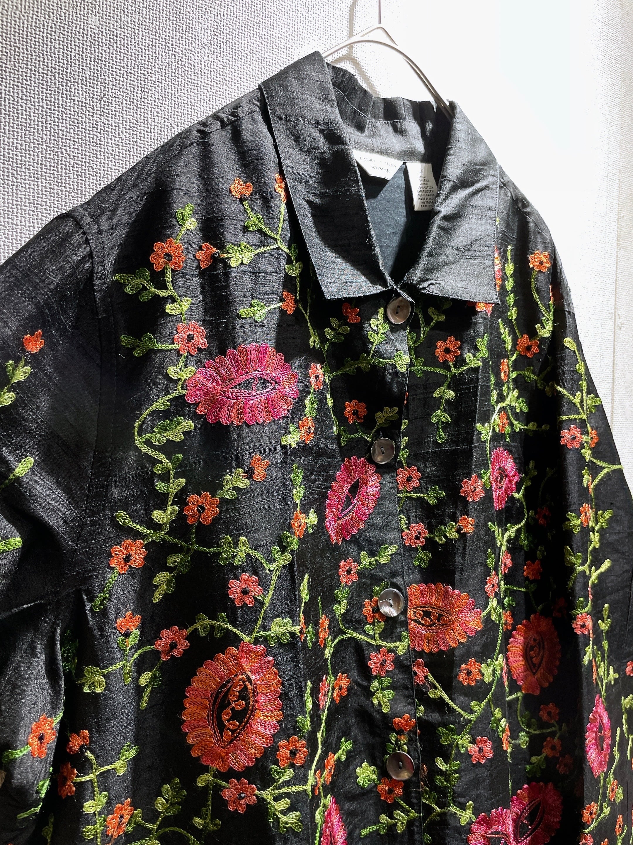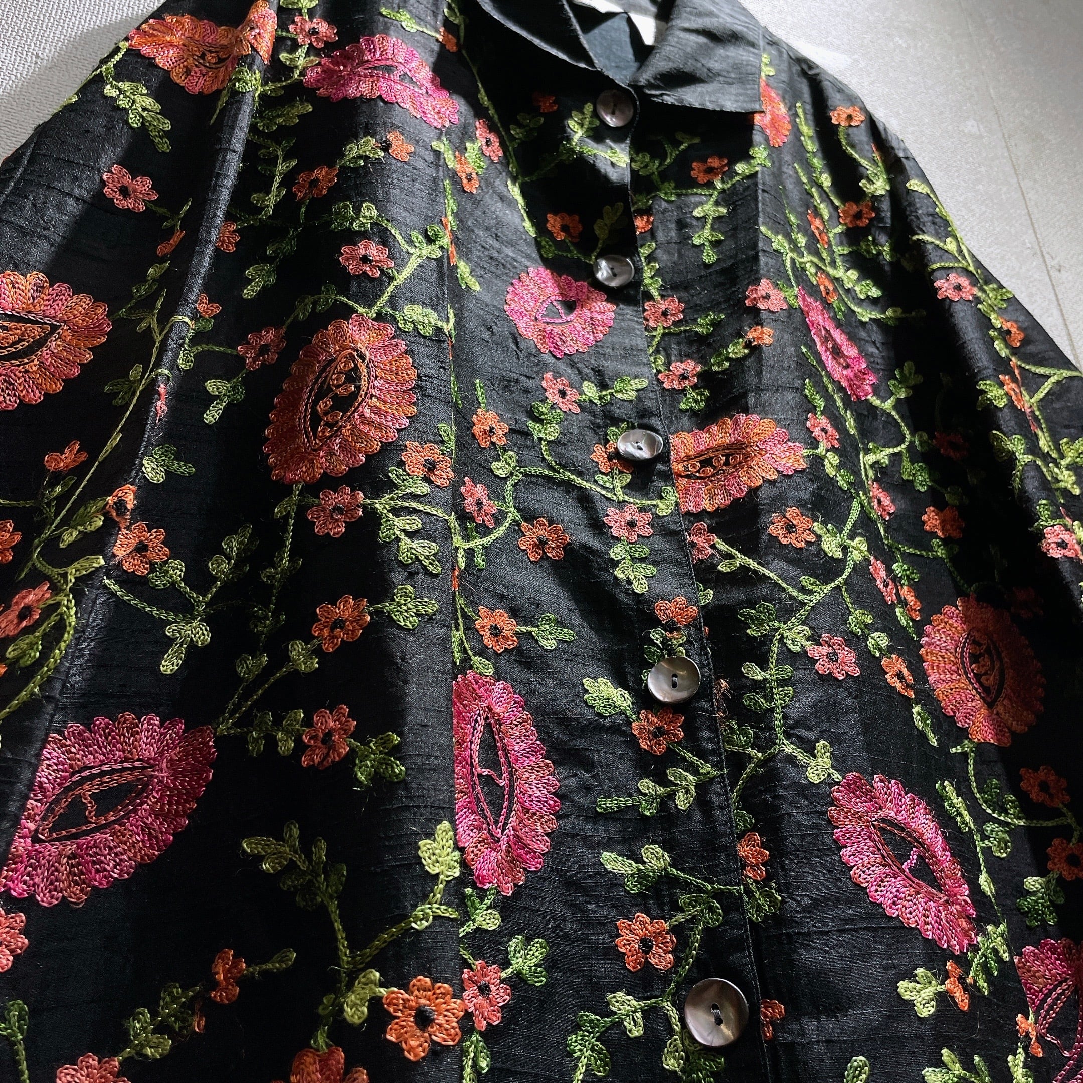 ” Laura Ashley ” Botanical Flower embroidery vintage loose silk jacket