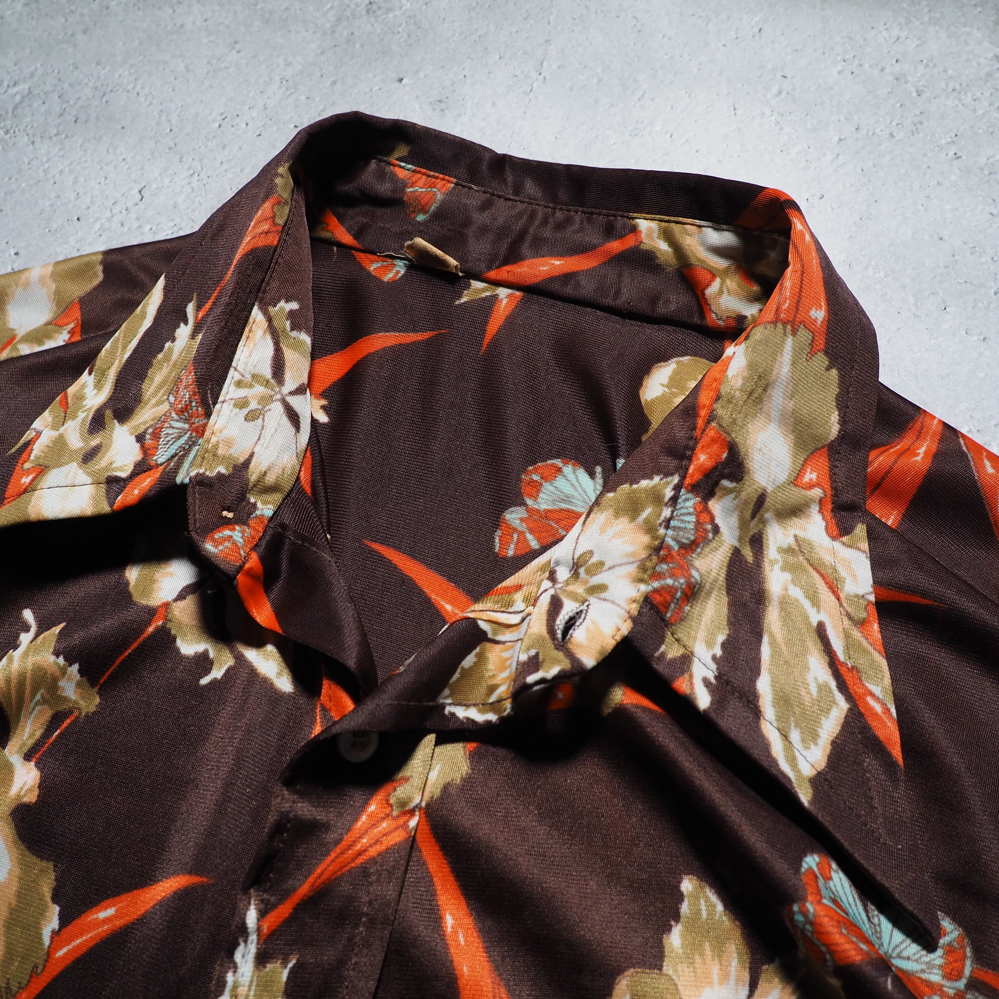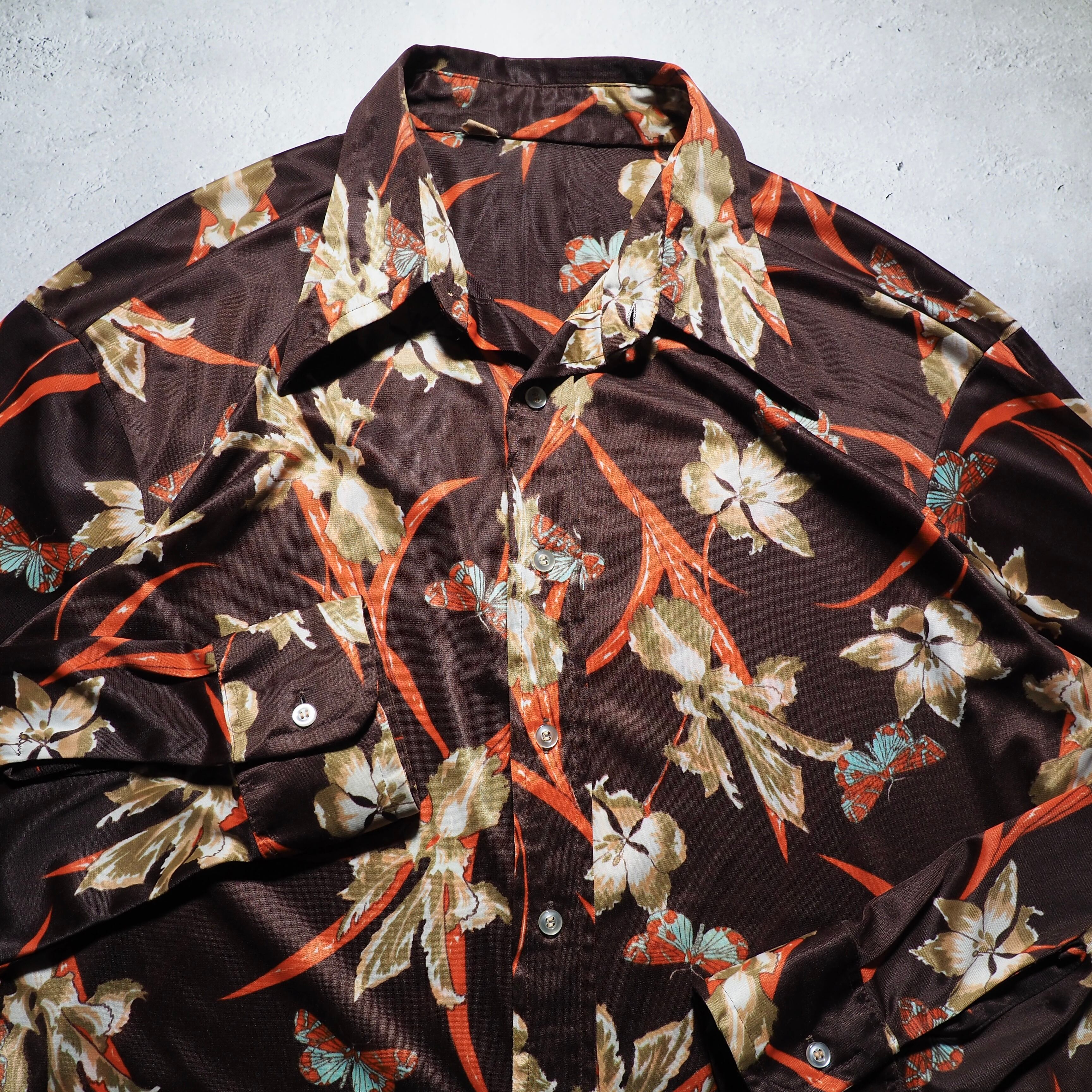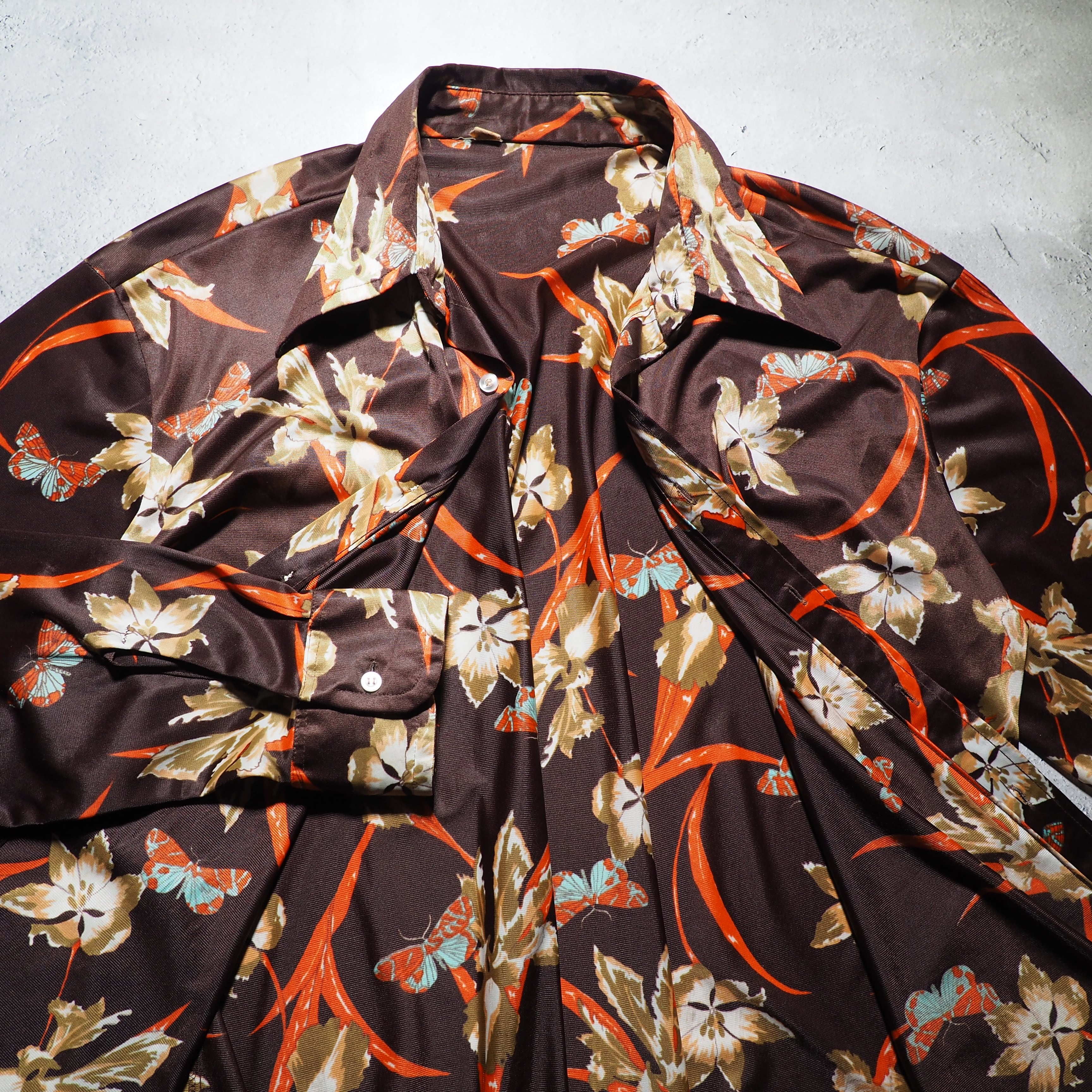 1970s Beautiful Butterfly × Flower painted vintage loose Western shirt