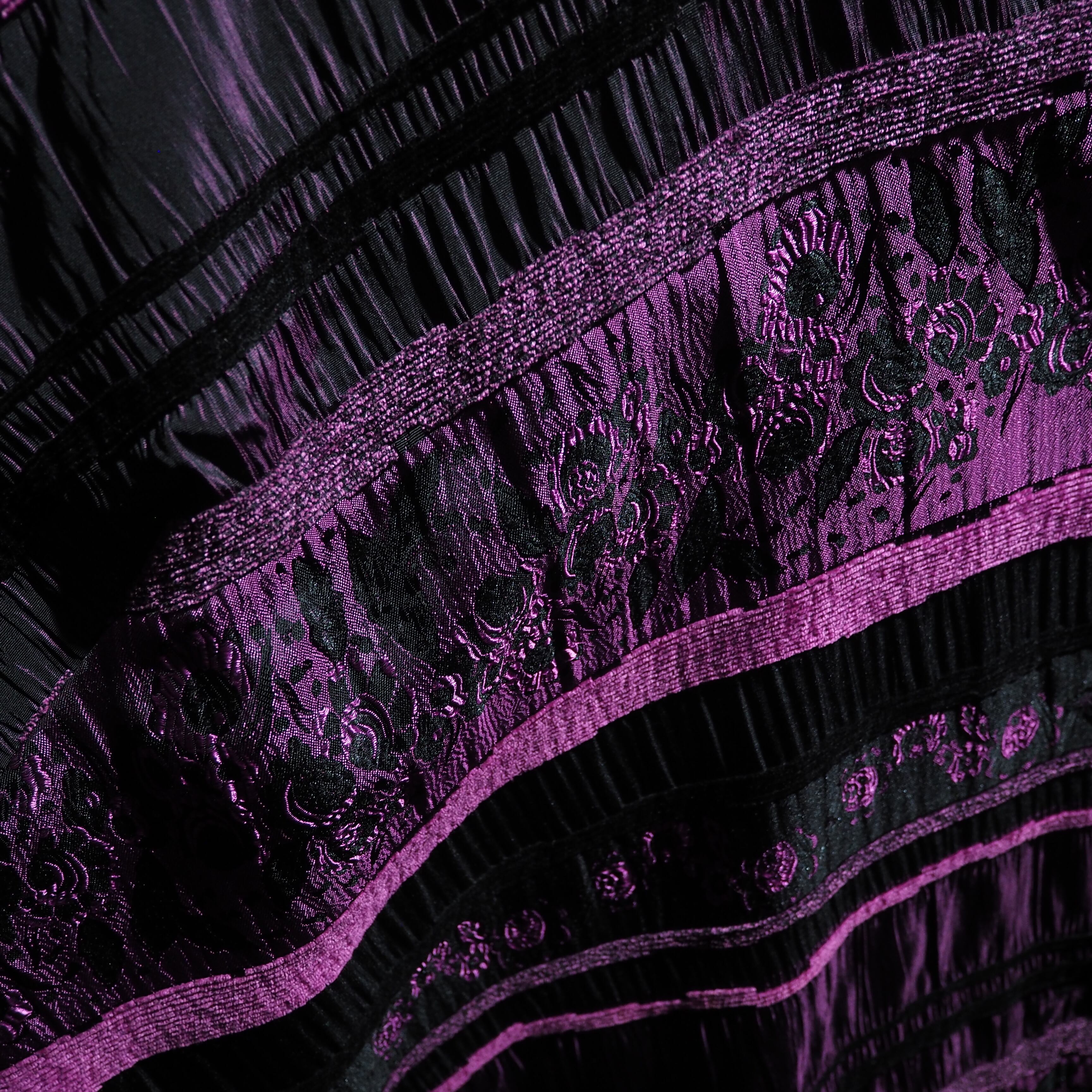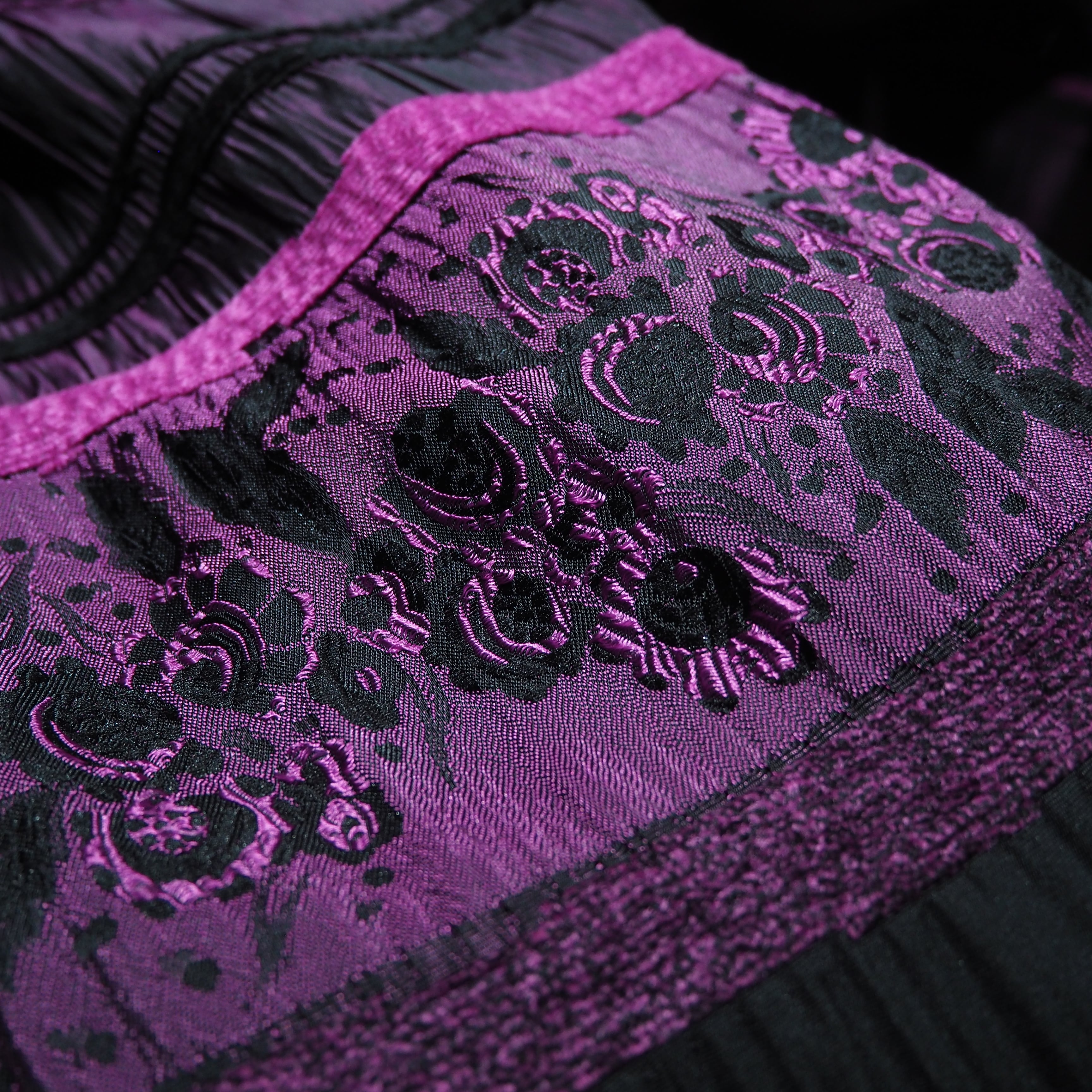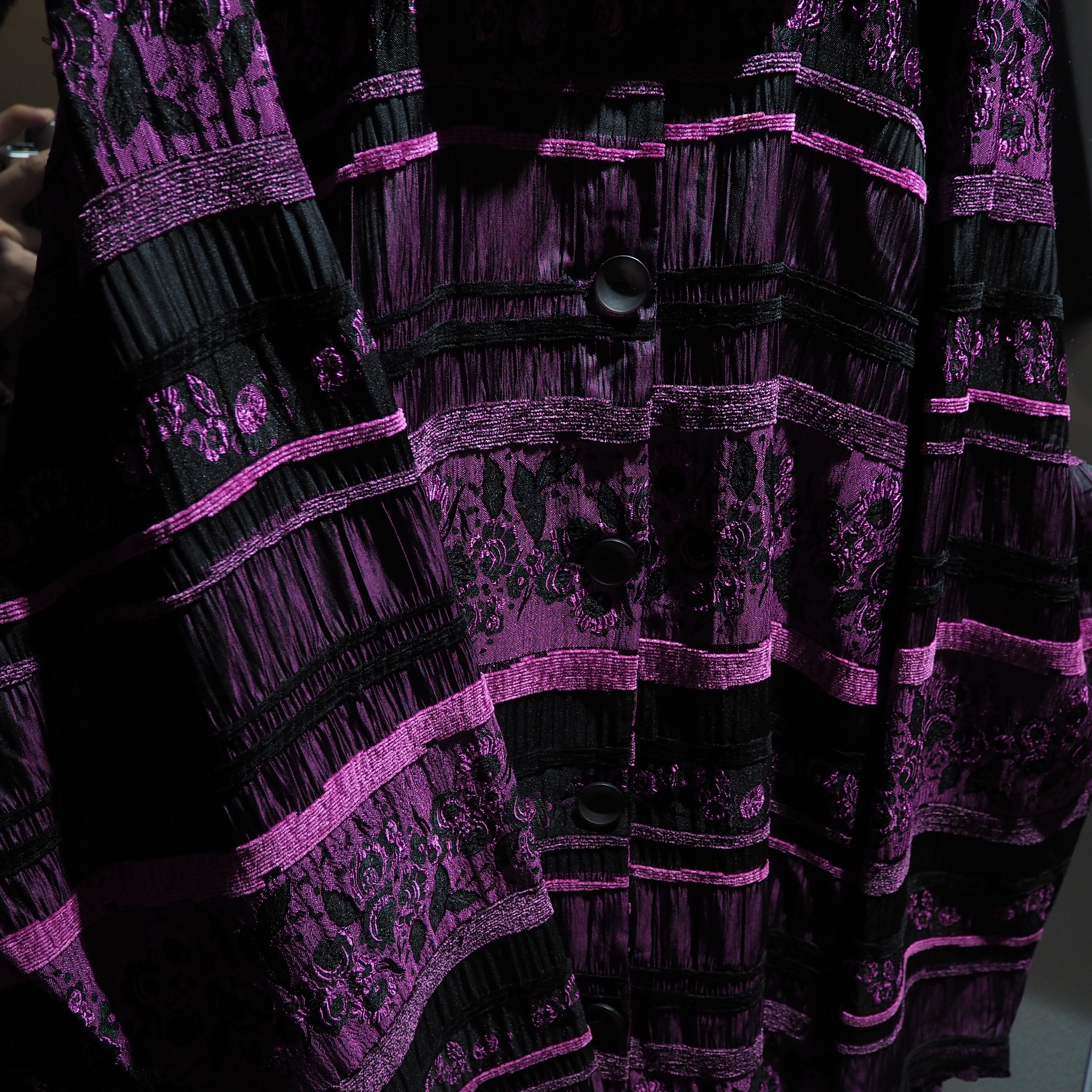 光沢ベロア×立体折プリーツ×花刺繍と贅の限りを尽くしたラグジュアリーモードなジャケット。