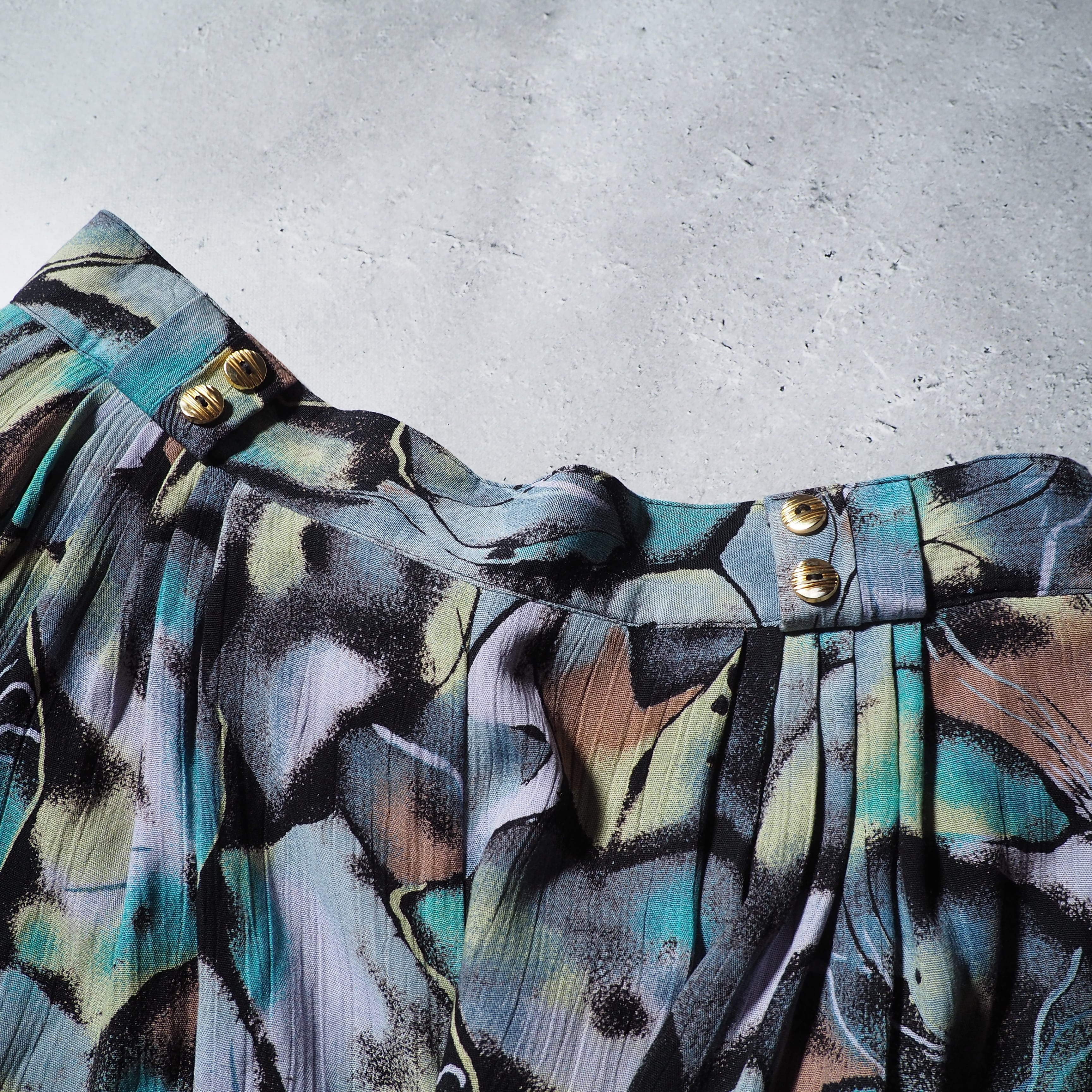 ” Sixth sense ” abstract art pattern vintage pleats wide hakama pants