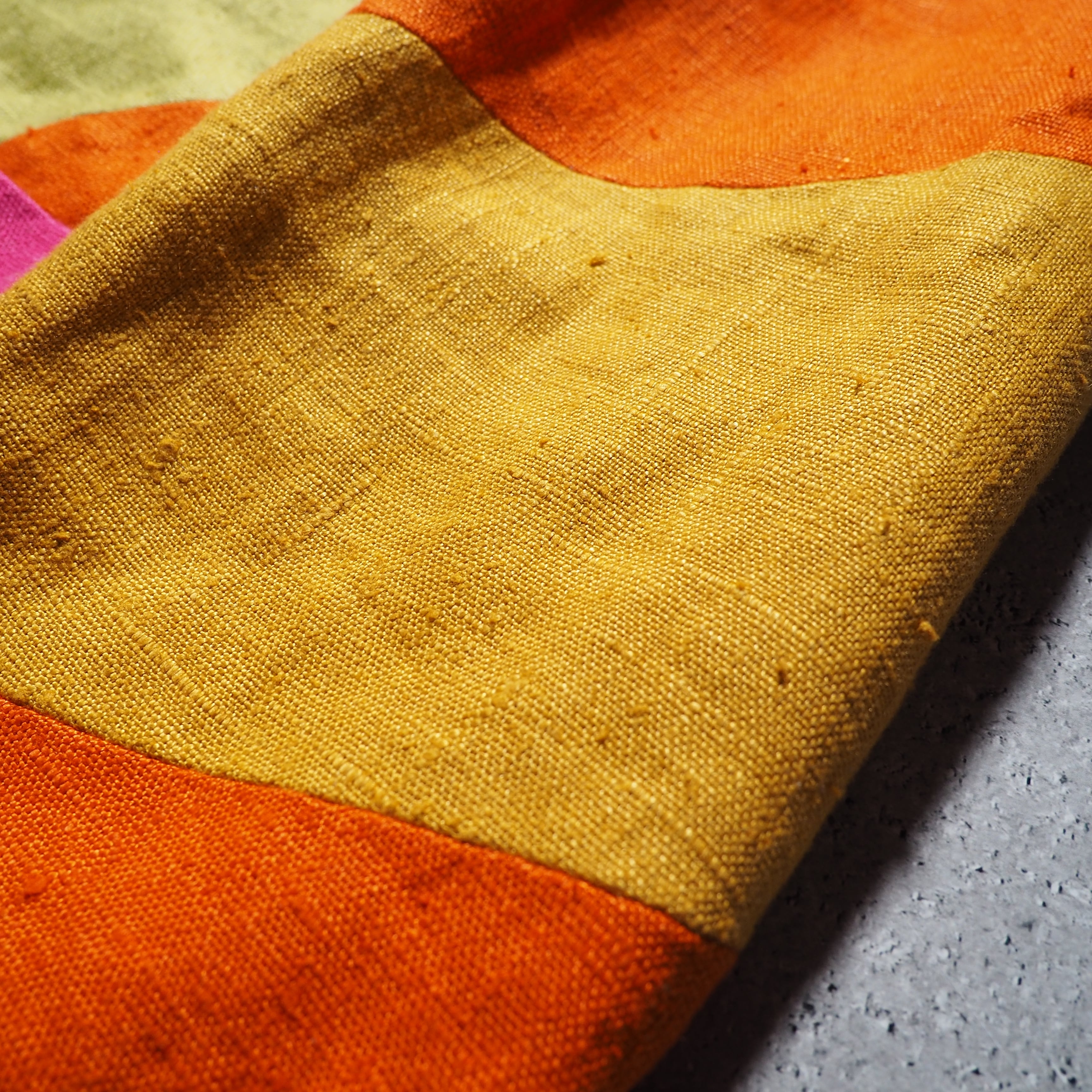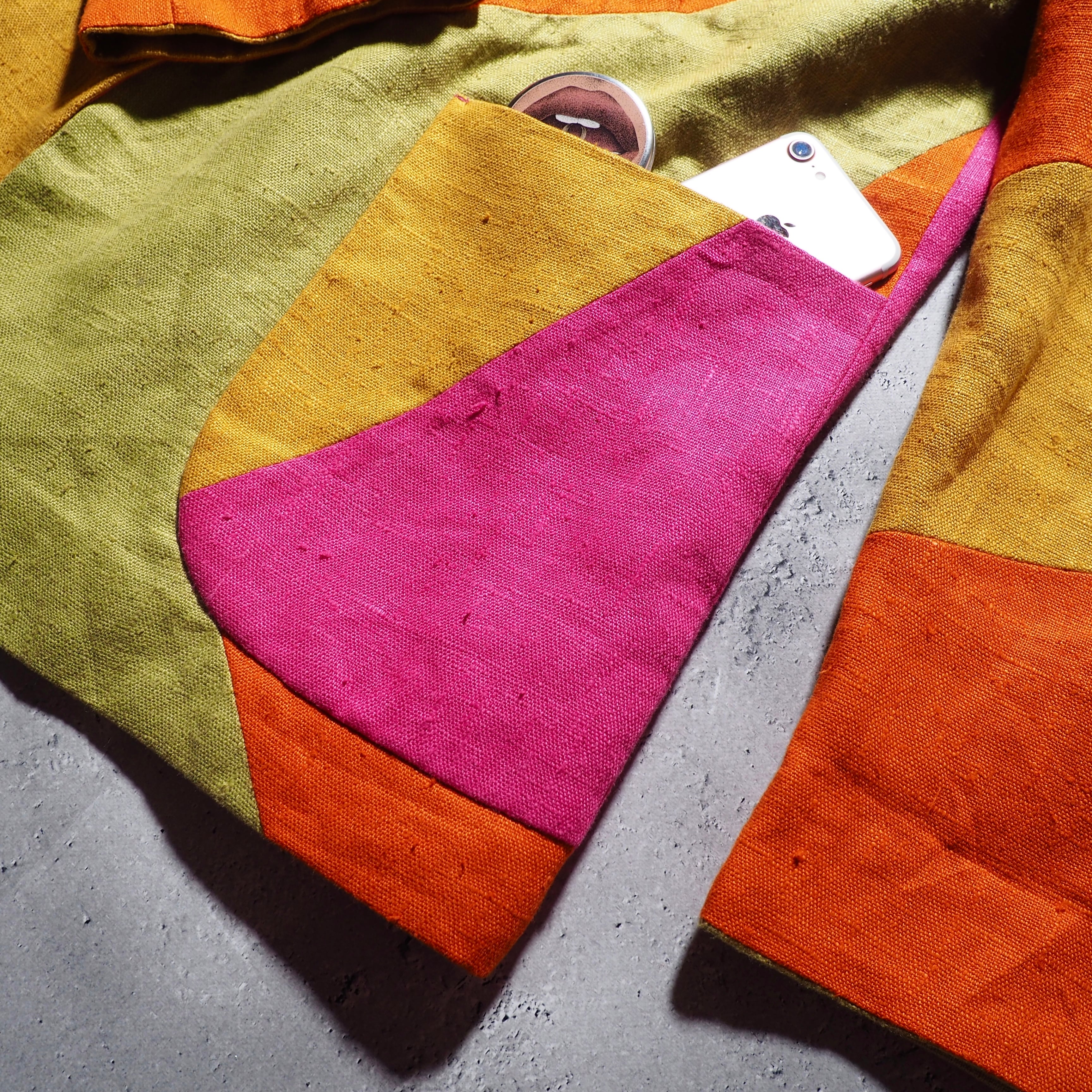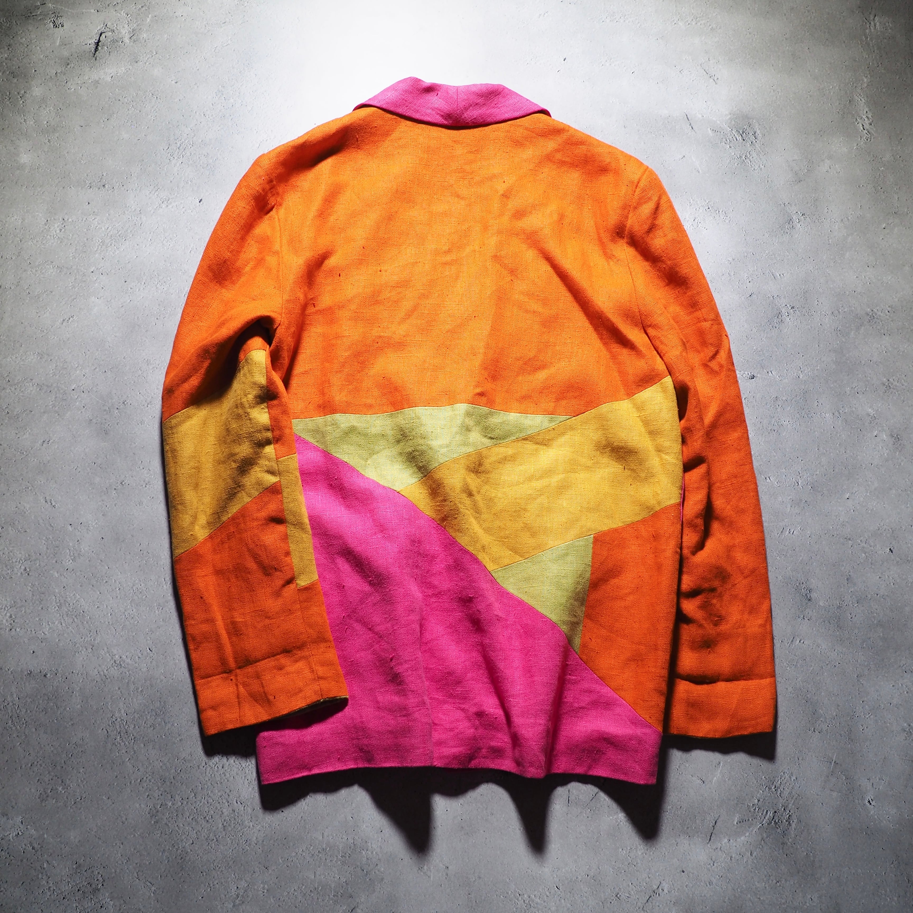 某デザイナーズを彷彿させるビビッドな色合いとパネル切り替えデザインが秀逸なリネンジャケット。