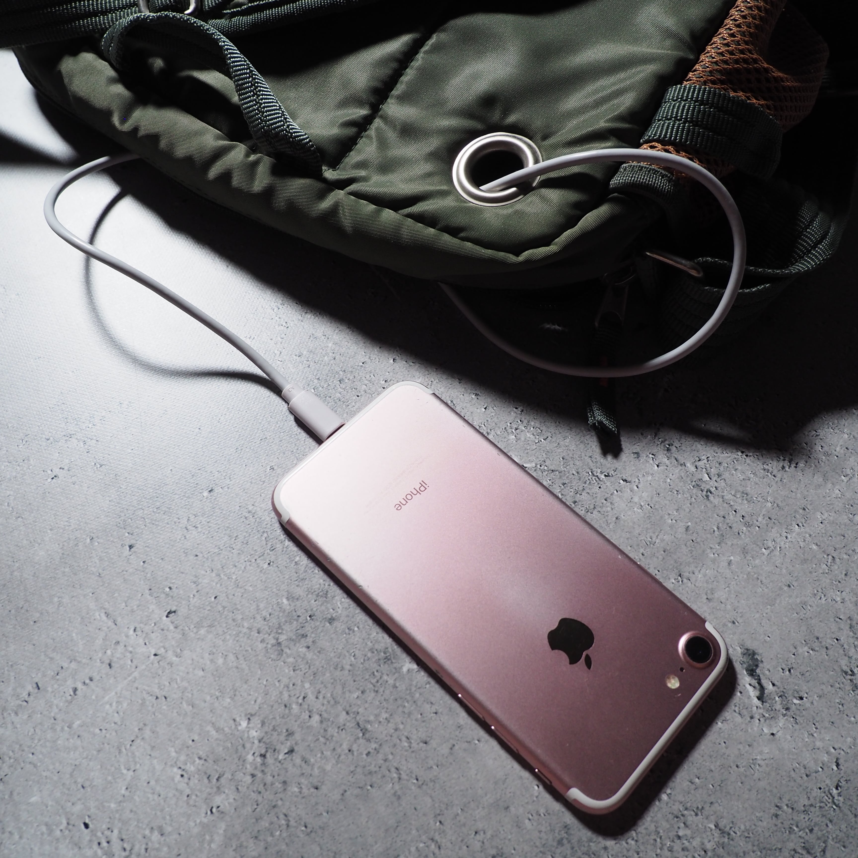 個人的に推したいポイントは、内地から背面に貫通したシルバーリングホール。こちらはコードやイヤホンを通す穴で、モバイルバッテリー等を収納したままバッグの外でスマホ等を使用する事が出来る仕様となっています。