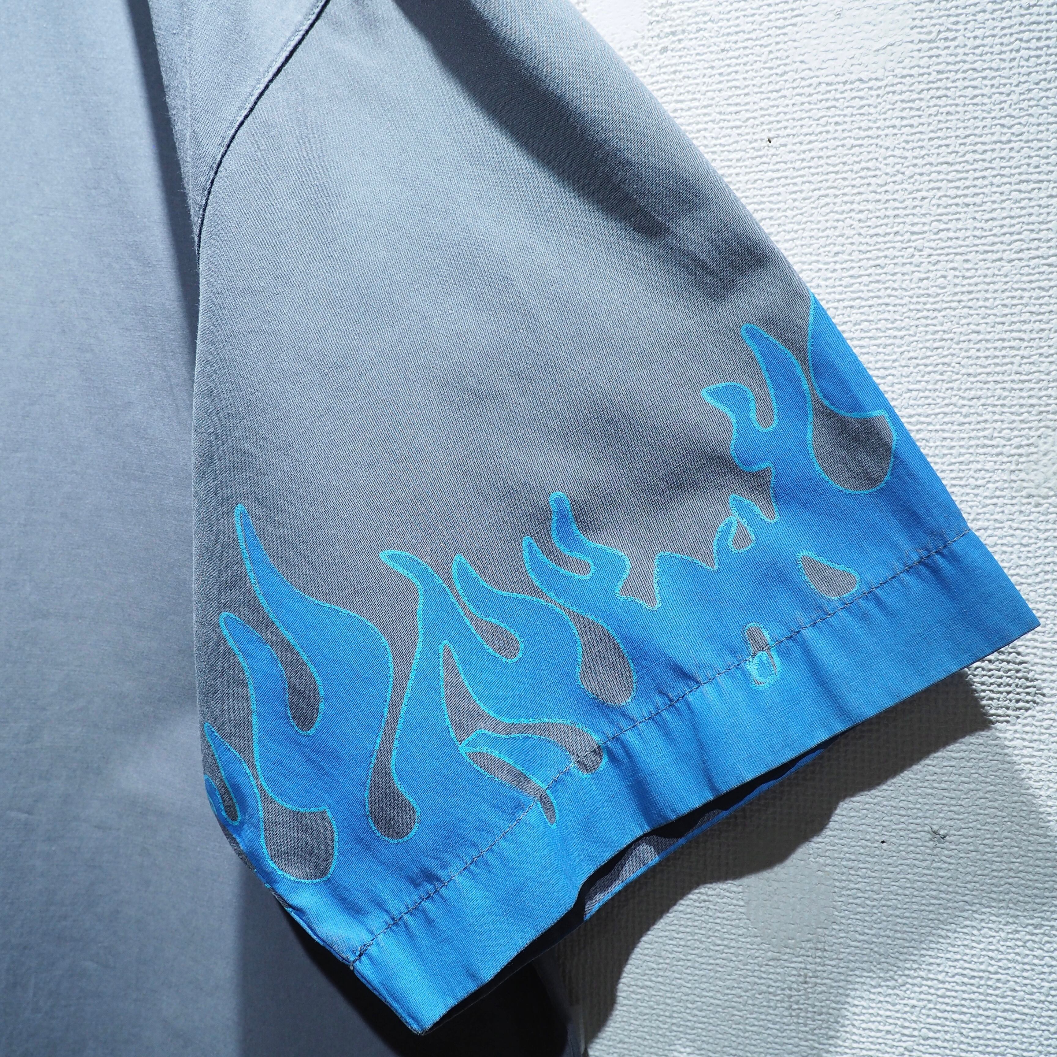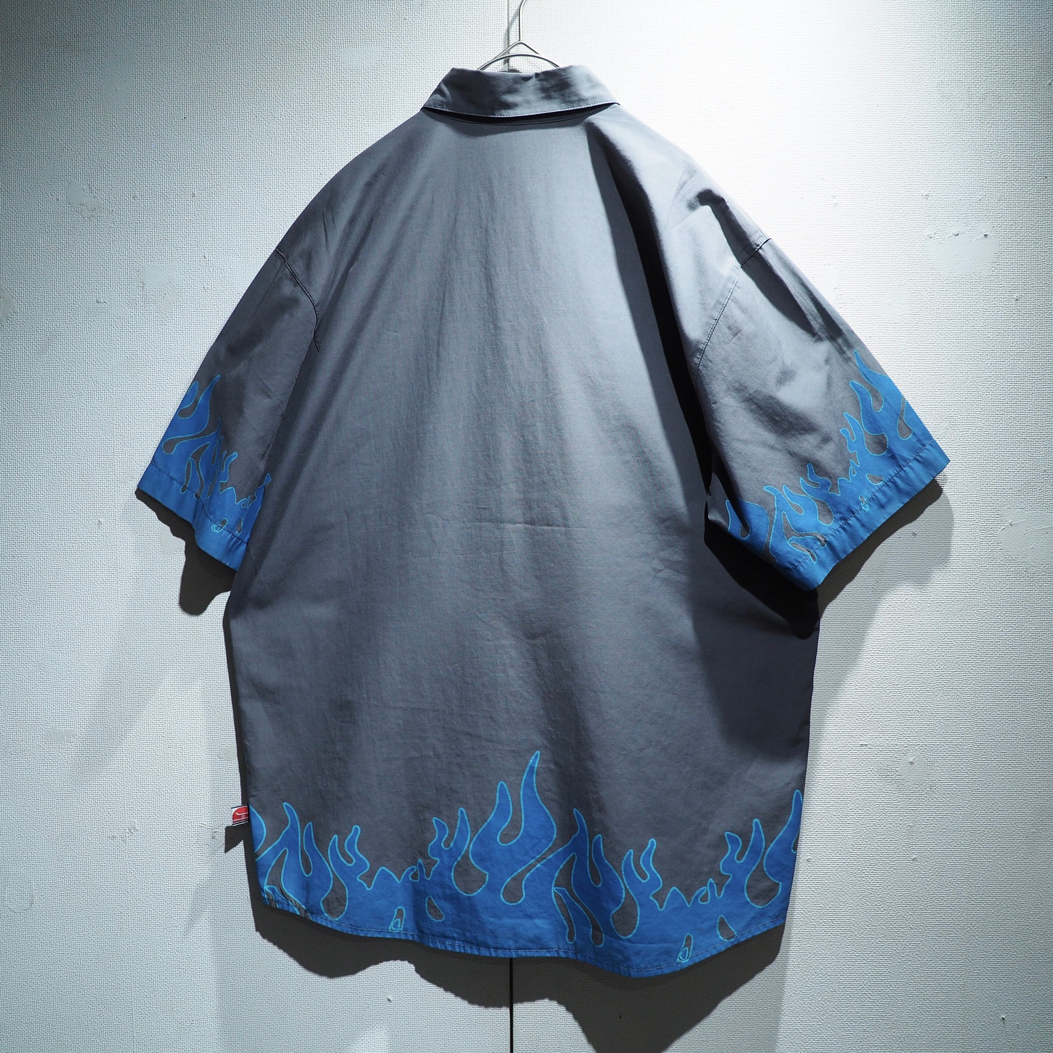 マットな質感のコットンポリボディに描かれたチープなファイアーパターンがオツなSSシャツ。こう言うのが1番良い。
