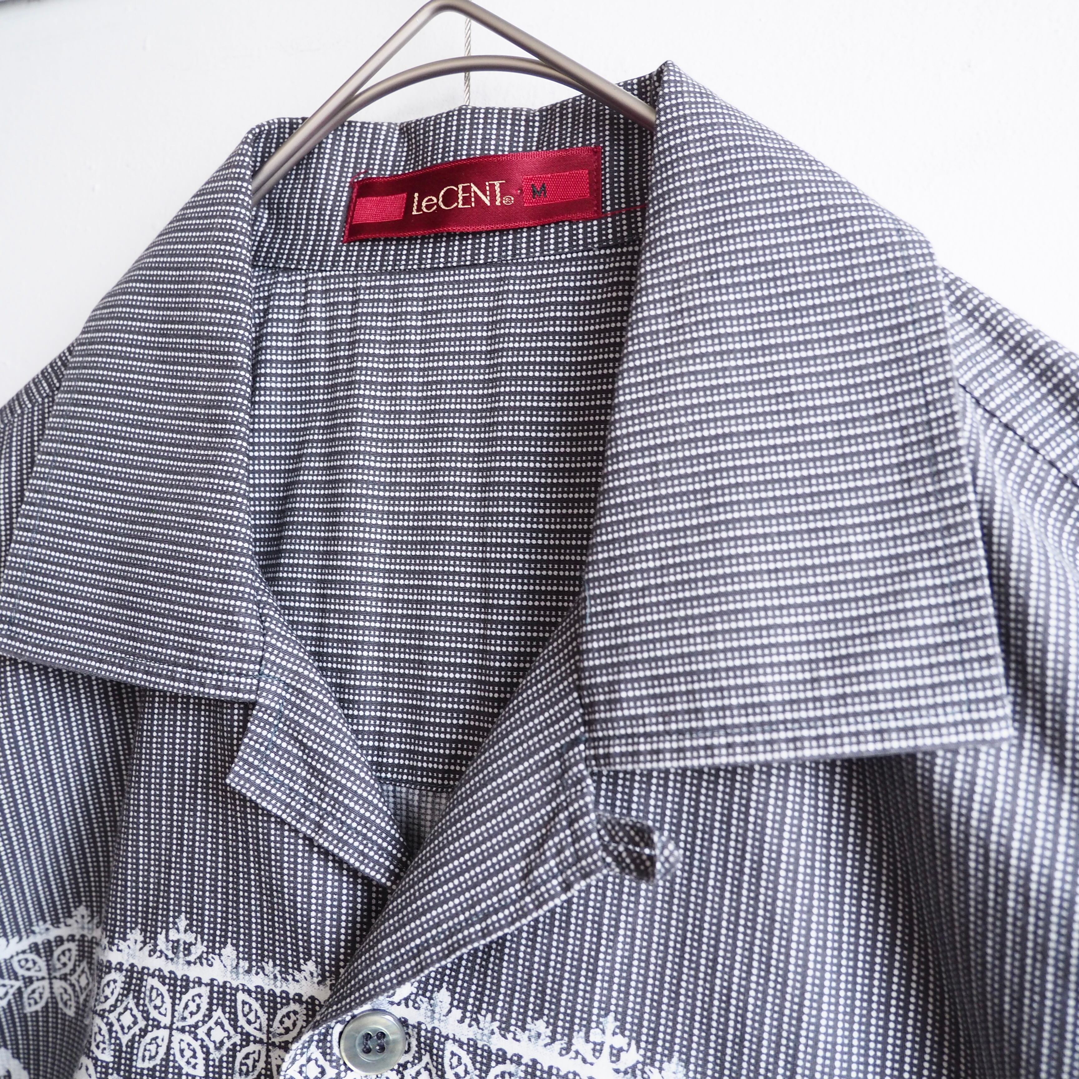 1990s ” LeCENT ” Ethnic Tribal pattern Design vintage SS open collar shirt