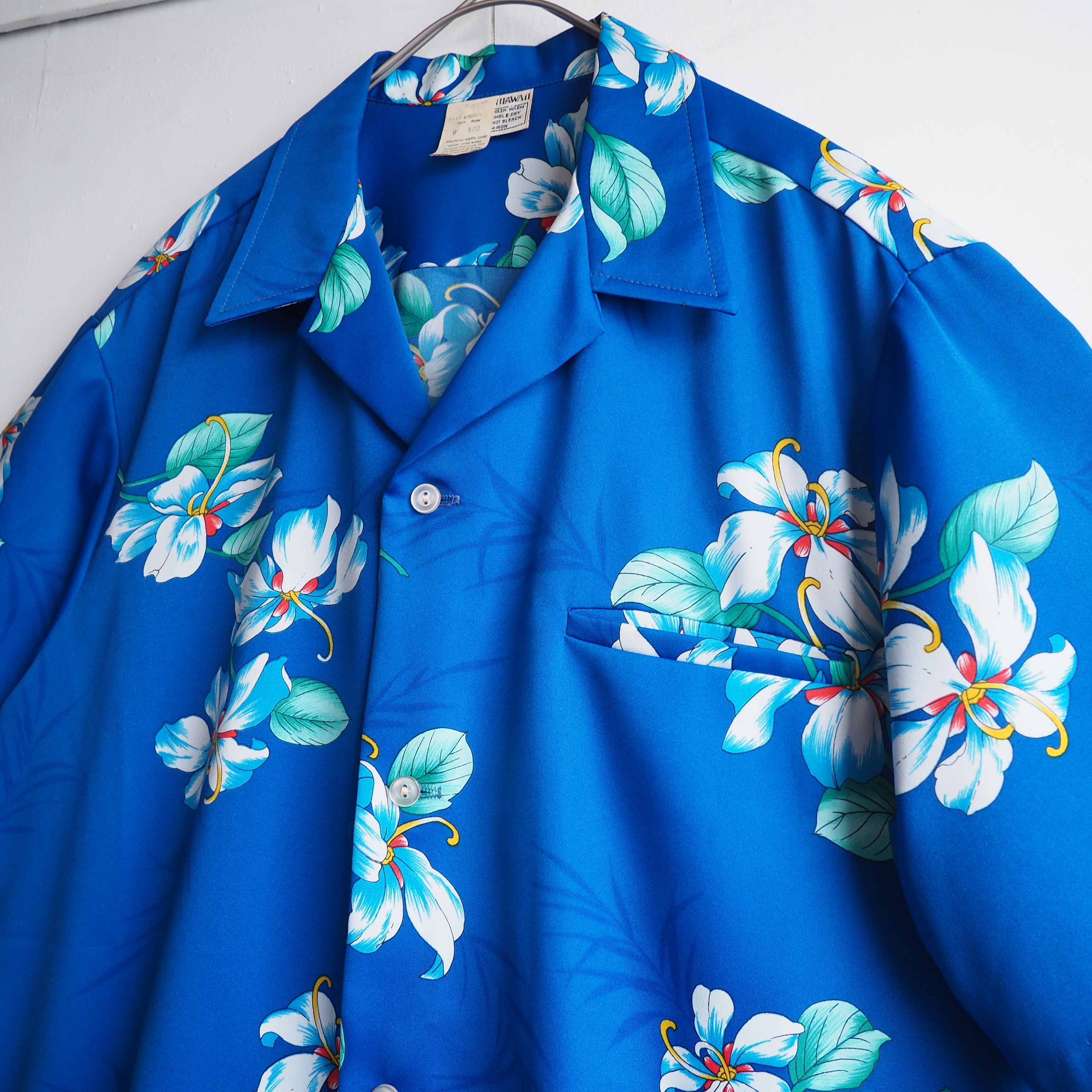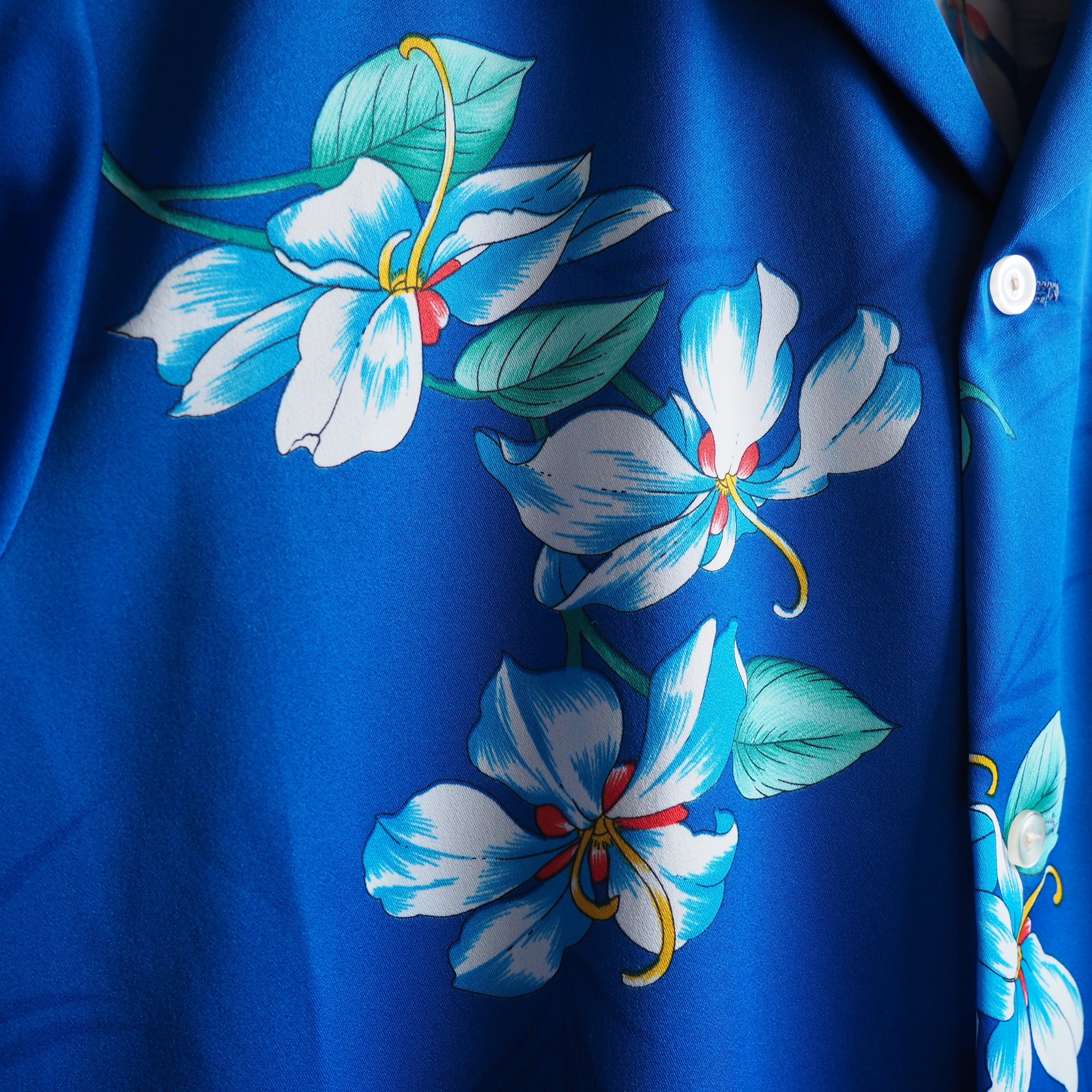 1980s Botanical tropical Flower painted vintage SS open collar shirt(made in Hawaii)