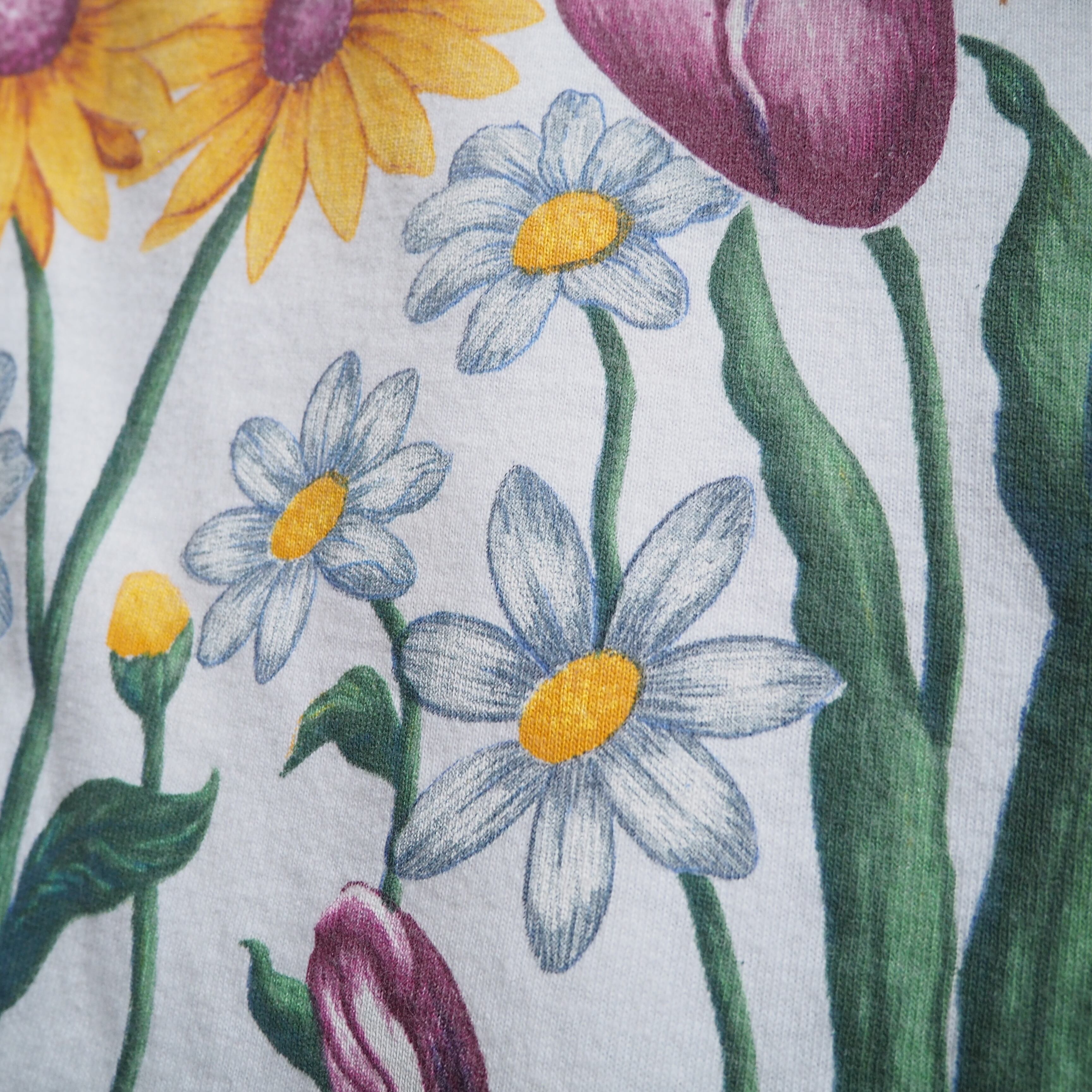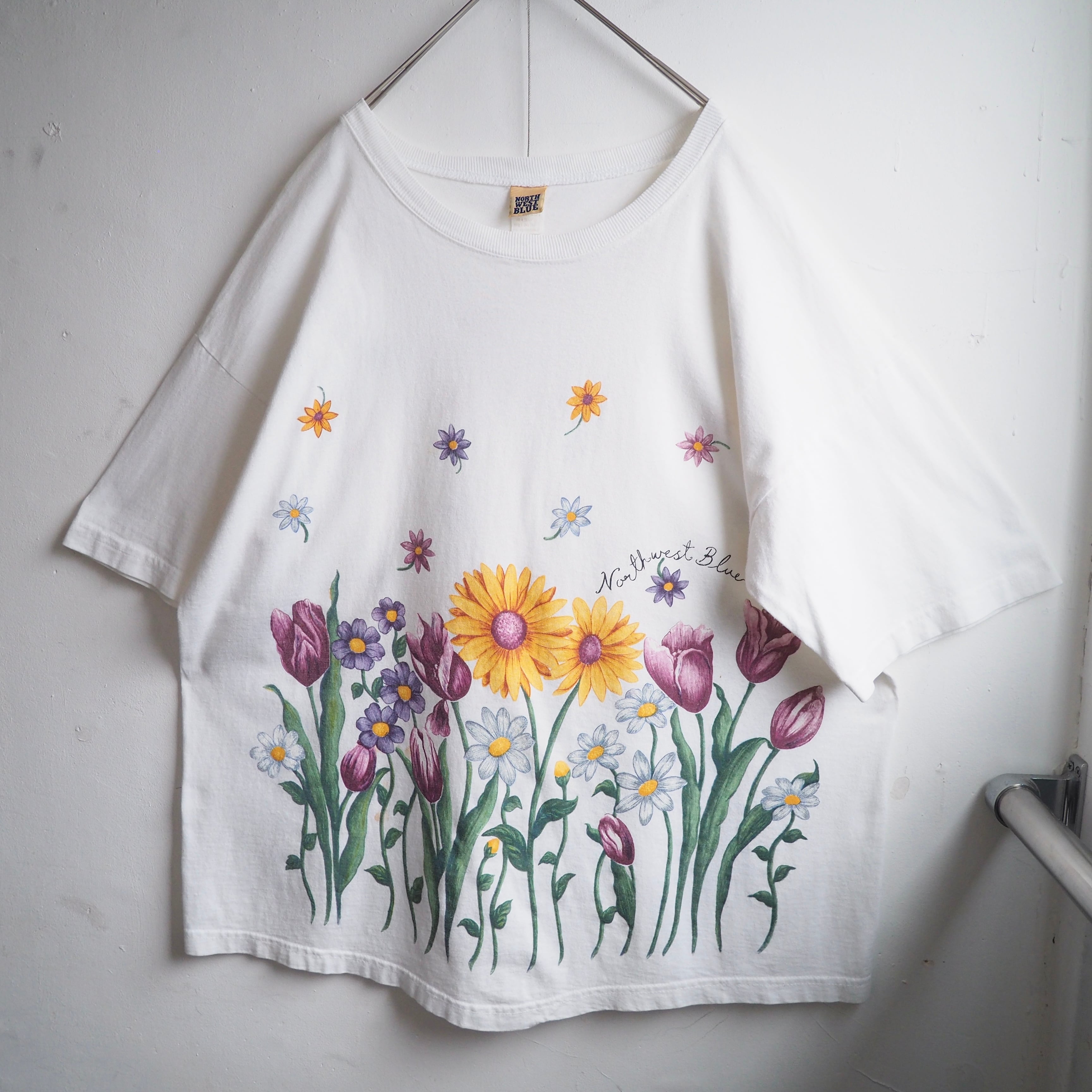 1990s ” NORTH WEST BLUE ” Beautiful Flower painted vintage loose Tee