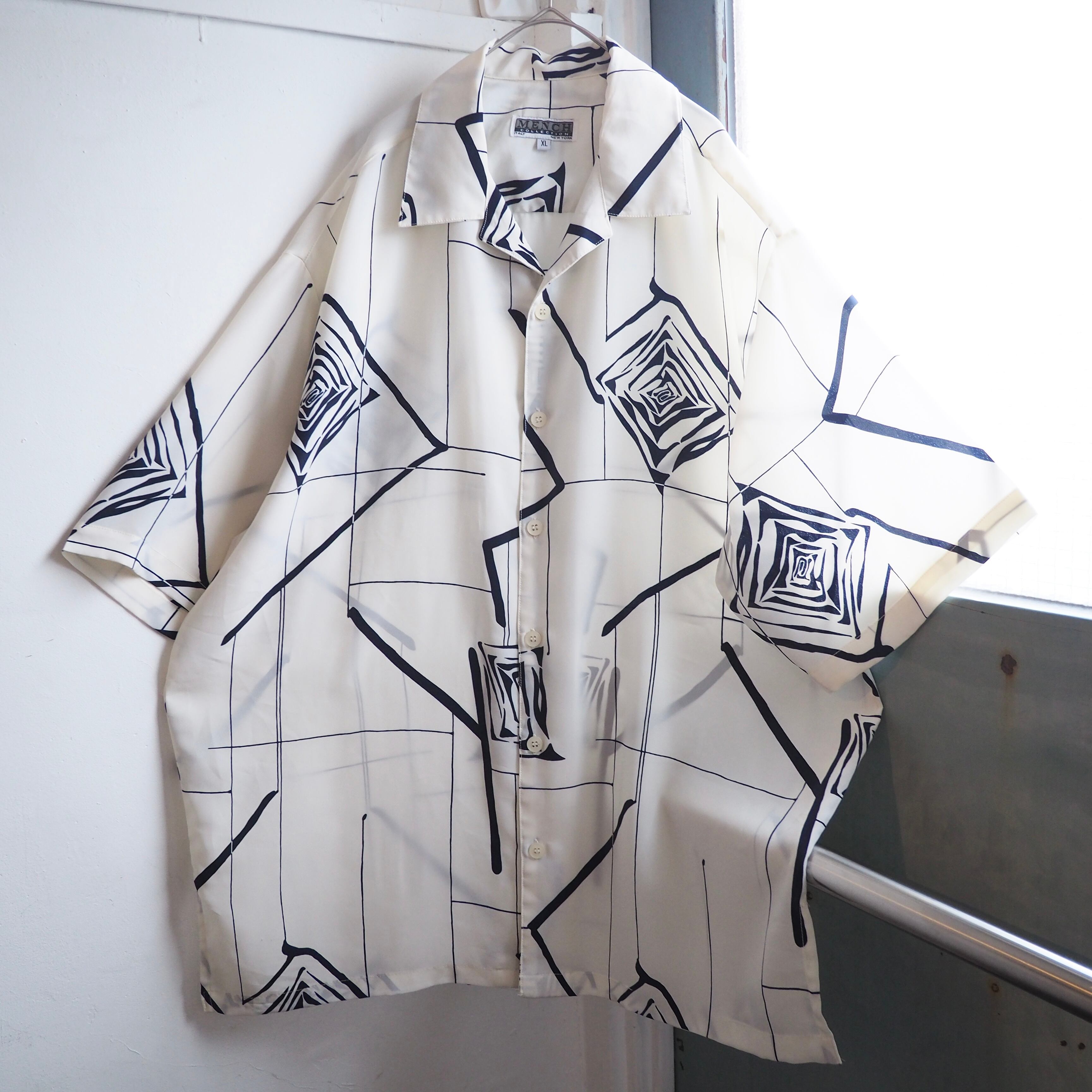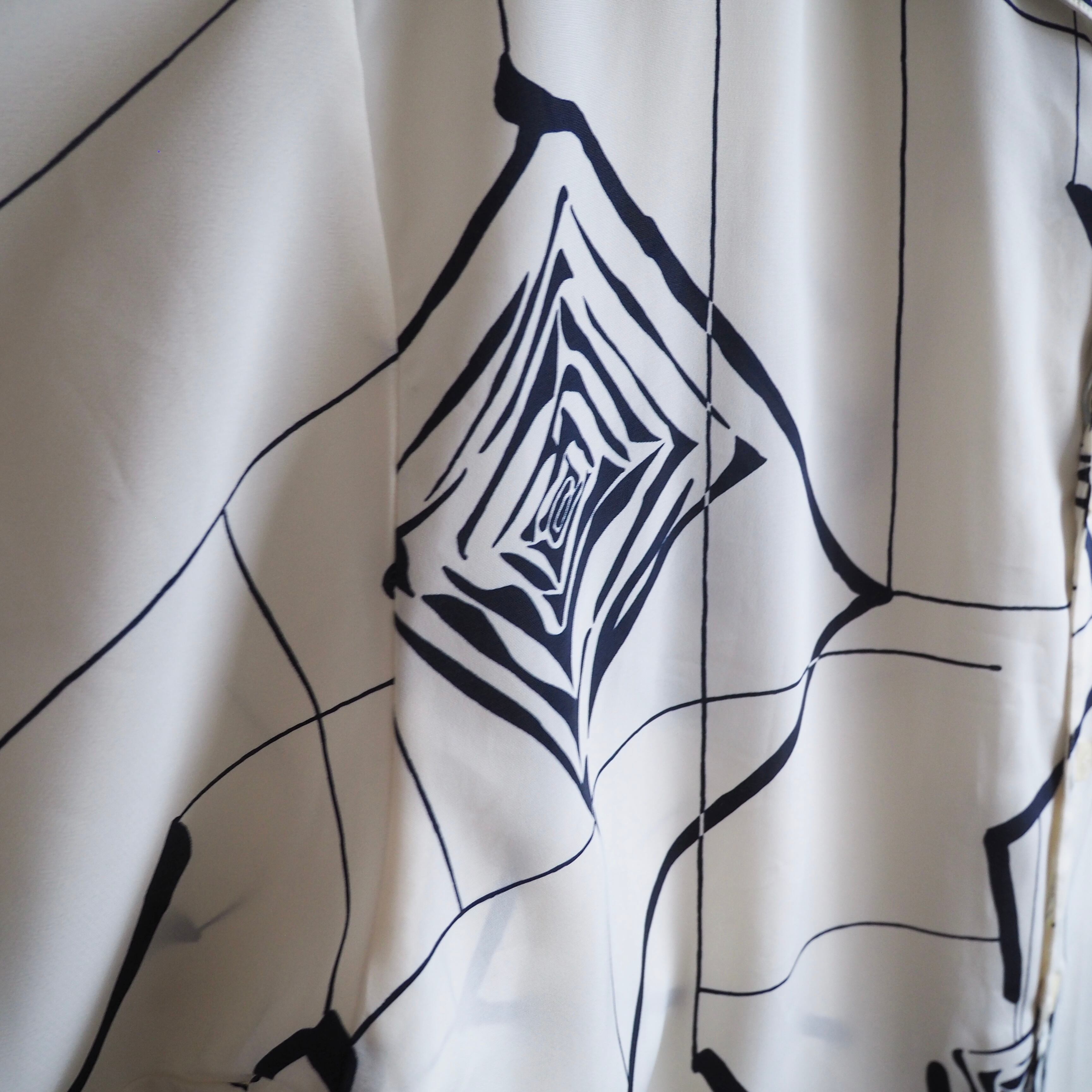1990s Black Rose motif Contemporary art vintage Drape loose Open collar shirt