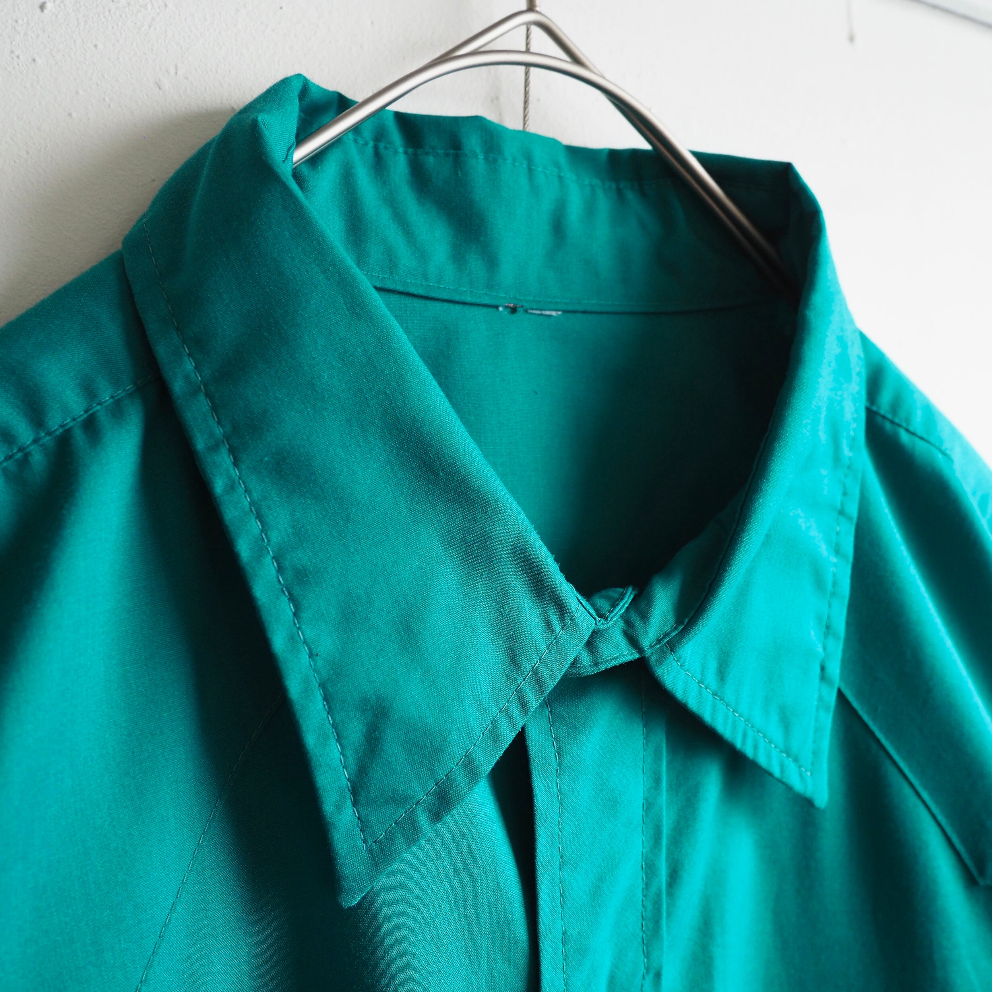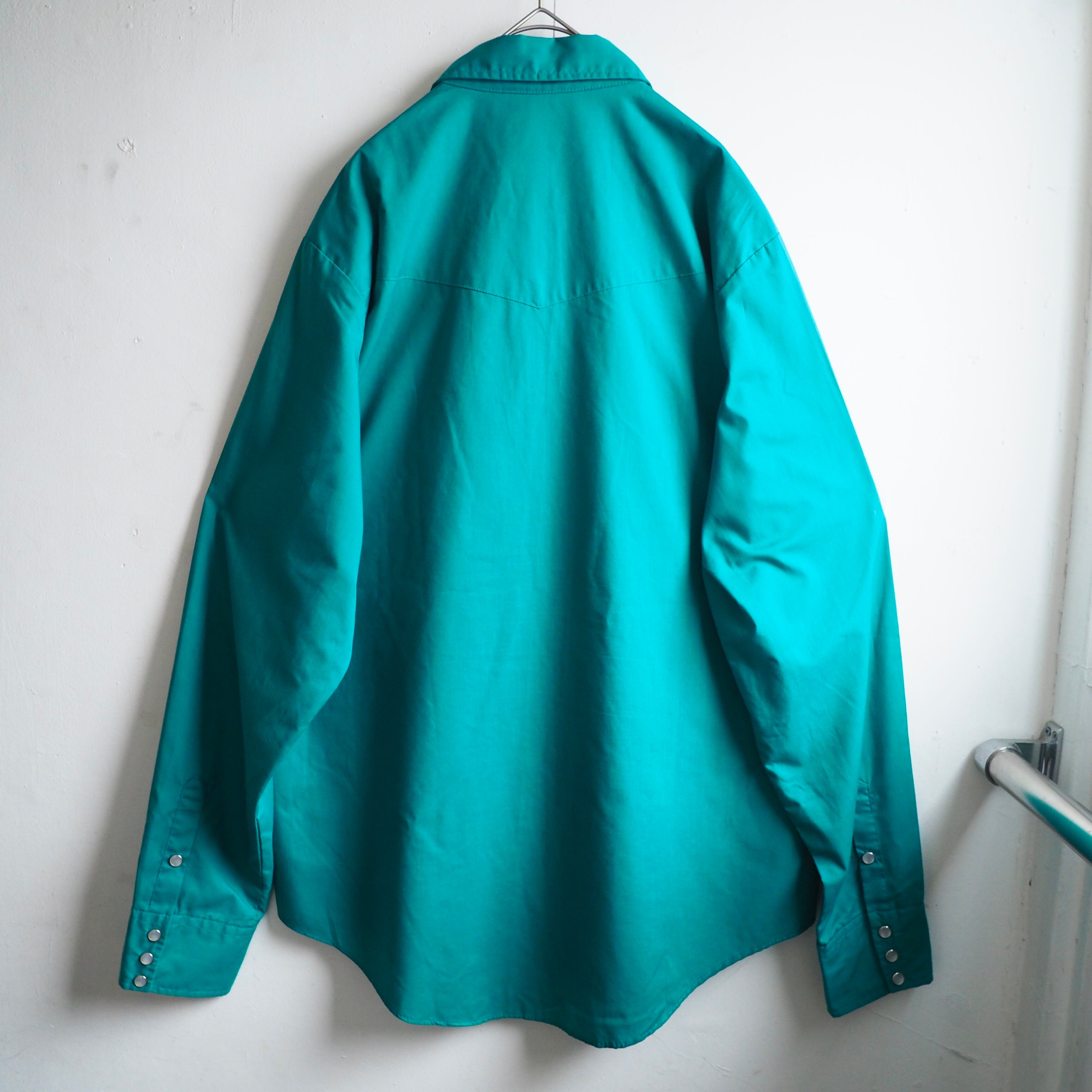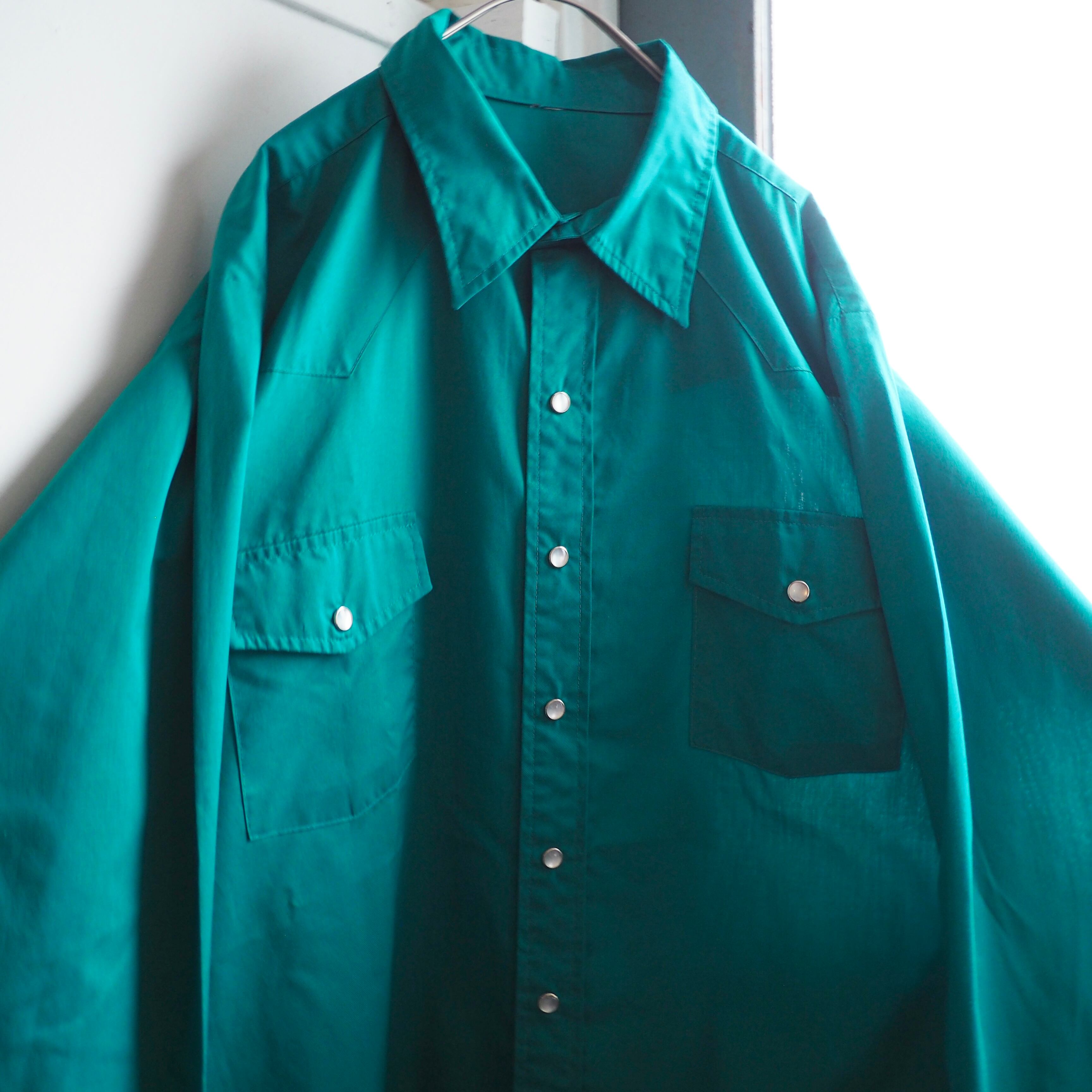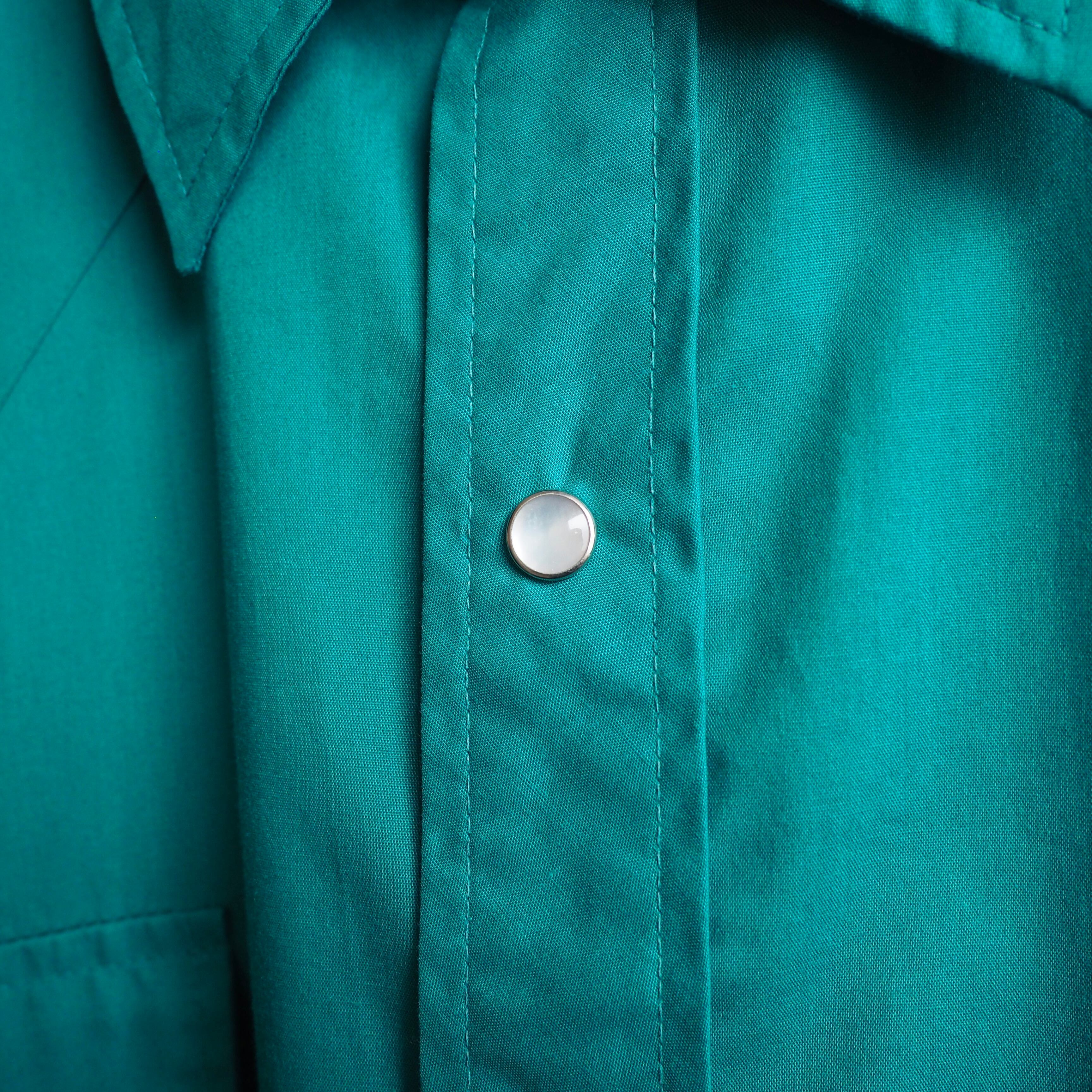 1970s Beautiful Turquoise green color vintage loose western Drape shirt