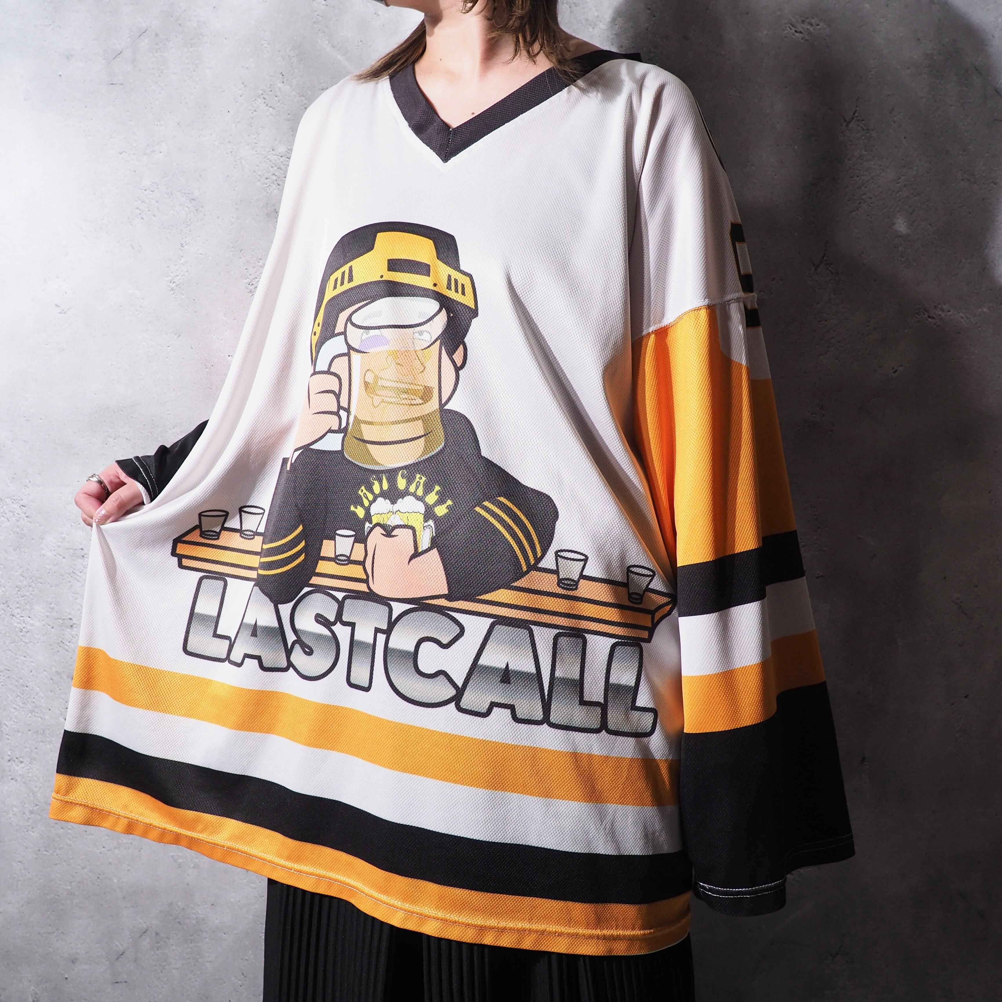 ” Last call ” Drunk men printed Design vintage loose silhouette hockey game shirt