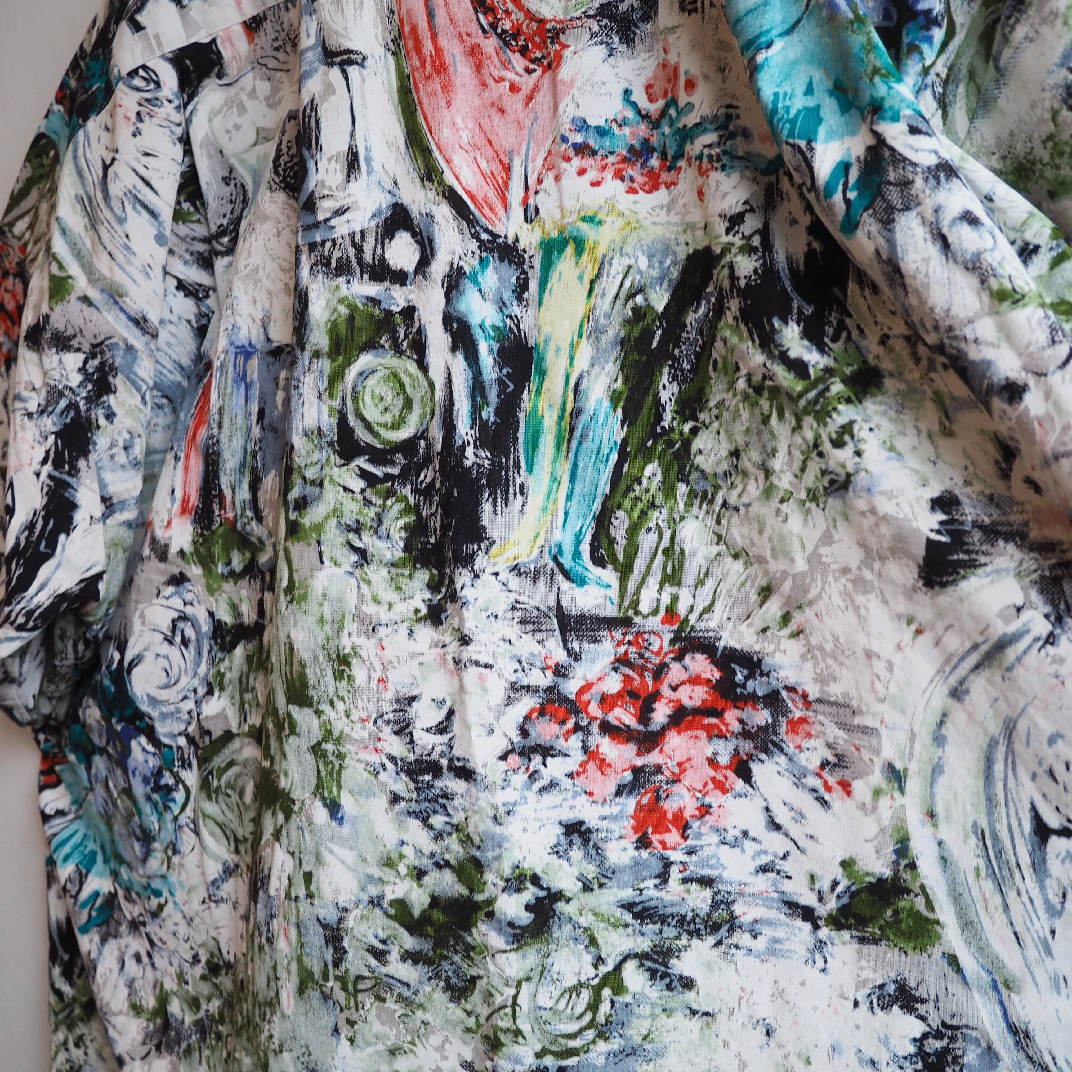 1990s Beautiful modern art Hand painted taste vintage open collar shirt