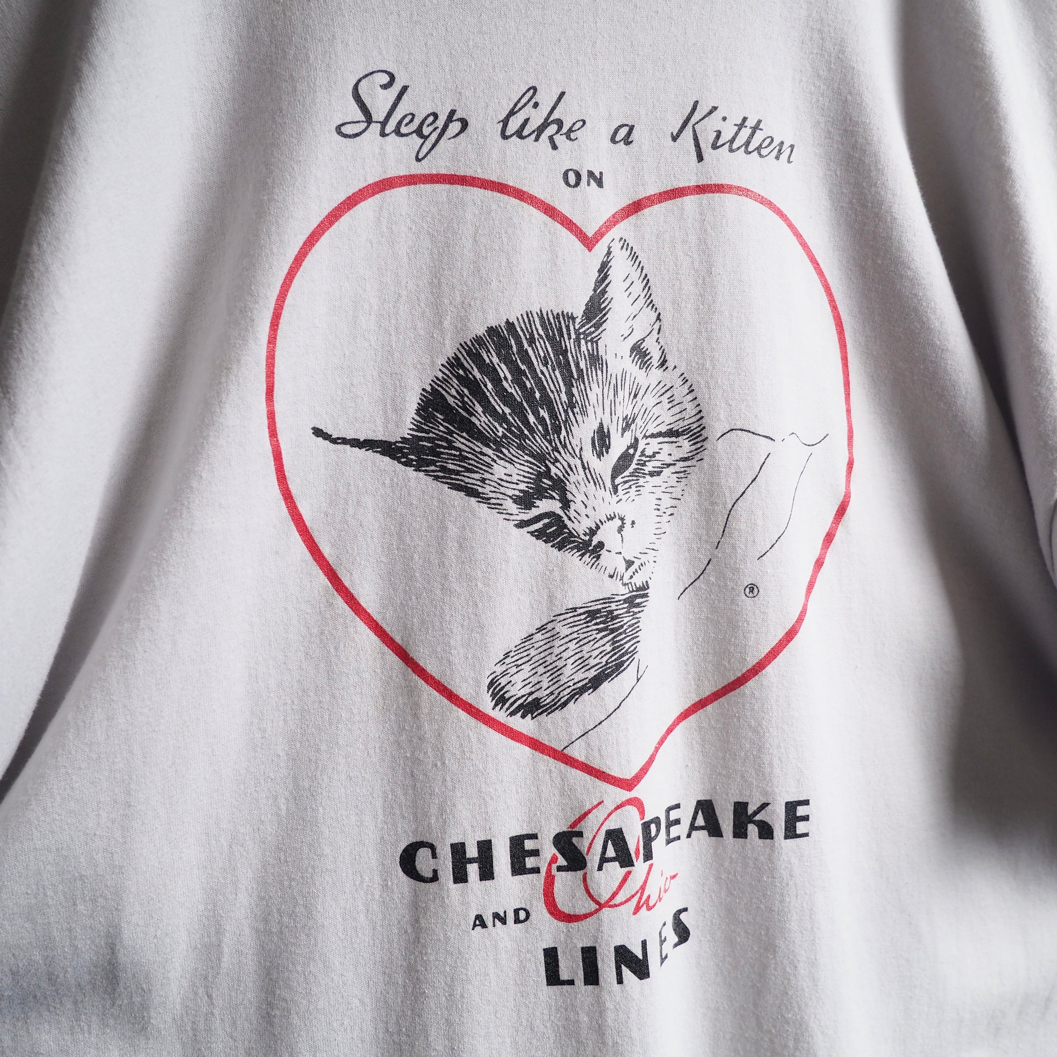 1990s ” Sleep cute Cat ” graphic printed vintage loose Tee (made in Usa)