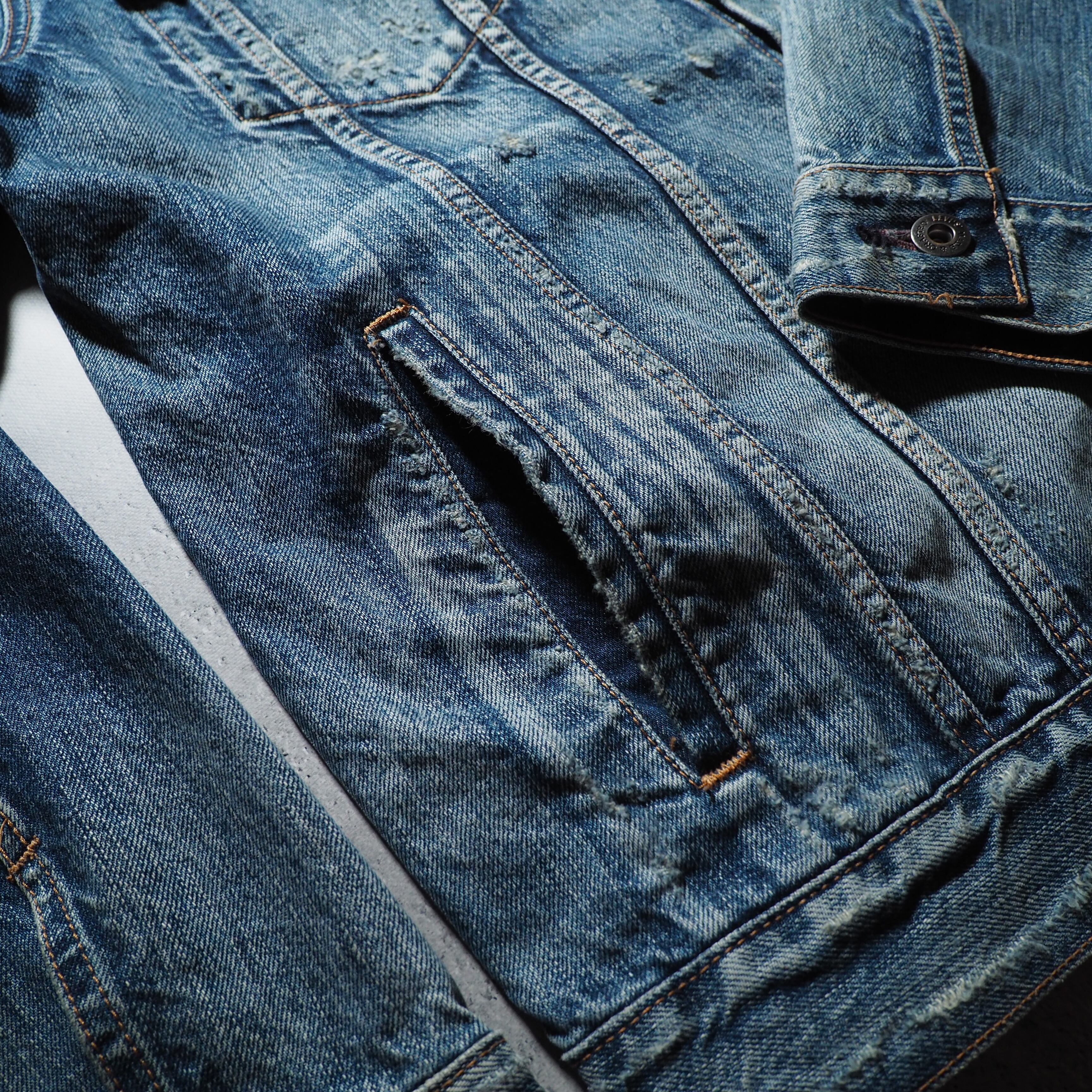 ” LEVI’S ” ” 襤褸 ” Repair processing Indigo loose Damage Denim jacket